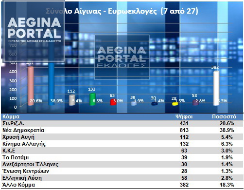 Ευρωεκλογές - Σύνολο Αίγινας - 16 από 27. Πηγή: Aegina Portal.
