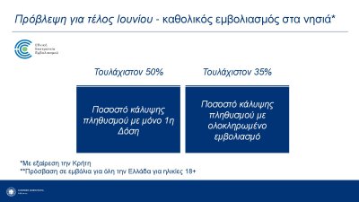 Τα συγκεκριμένα νησιά ενισχύονται με επιπλέον εμβολιαστικά κέντρα από τις δυνάμεις του Εθνικού Συστήματος Υγείας και κινητά συνεργεία εμβολιασμού που θα υποστηρίξουν την ολοκλήρωση του καθολικού εμβολιασμού.