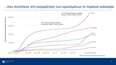 Θυμίζω εδώ ότι πέρυσι είχαμε 5.000.000 αφίξεις στις πύλες εισόδου όλης της χώρας και πραγματοποιήσαμε περίπου 700.000 δειγματοληψίες. Εντοπίσαμε έτσι κοντά στα 2.700 θετικά κρούσματα. Καταφέραμε με αυτό τον τρόπο να συγκρατήσουμε το επιδημιολογικό φορτίο χαμηλότερα από όλες τις υπόλοιπες τουριστικές οικονομίες της Μεσογείου. Από την Ισπανία, τη Γαλλία, την Κροατία, τη Μάλτα.