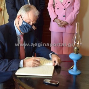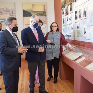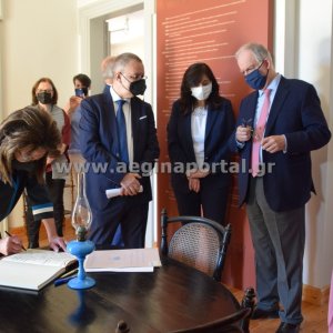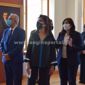 Ο πρόεδρος της Βουλής κ. Κωνσταντίνος Τασούλας, η πρόεδρος της Εθνικής Επιτροπής 2021 κυρία Γιάννα Αγγελοπούλου και ο δήμαρχος Αίγινας κ. Γιάννης Ζορμπάς έκοψαν την κόκκινη κορδέλα των εγκαινίων της έκθεσης: "Το Κυβερνείο της Αίγινας υποδέχεται και πάλι τον Ιωάννη Καποδίστρια". Ακολούθησε ξενάγηση στην έκθεση από τη Διευθύντρια της βιβλιοθήκης της Βουλής των Ελλήνων Ελένη Δρούλια και την Αναπληρώτρια Διευθύντρια των Γενικών Αρχείων του Κράτους, Αμαλία Παππά, παρουσία του επιμελητή της έκθεσης, ζωγράφου και σκηνογράφου της Βουλής των Ελλήνων, Γιάννη Μετζικώφ.