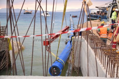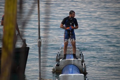 Λίγο πριν τις 21:30 σήμερα το βράδυ από την άκρη του υποθαλάσσιου αγωγού, τα τελευταία μέτρα του οποίου ποντίστηκαν σήμερα στο Λεόντι, μετά από μία σειρά εξειδικευμένων τεχνικών χειρισμών, που κράτησαν από το πρωί μέχρι αργά το βράδυ, το νερό που αγωγού που συνδέεται με το Πέρανι της Σαλαμίνας έφτασε στην Αίγινα. Στο video μπορείτε να δείτε το νερό να τρέχει για πρώτη φορά από τον υποθαλάσσιο αγωγό Αίγινας!