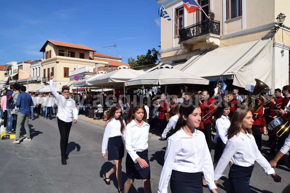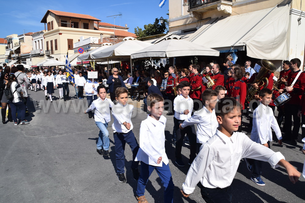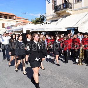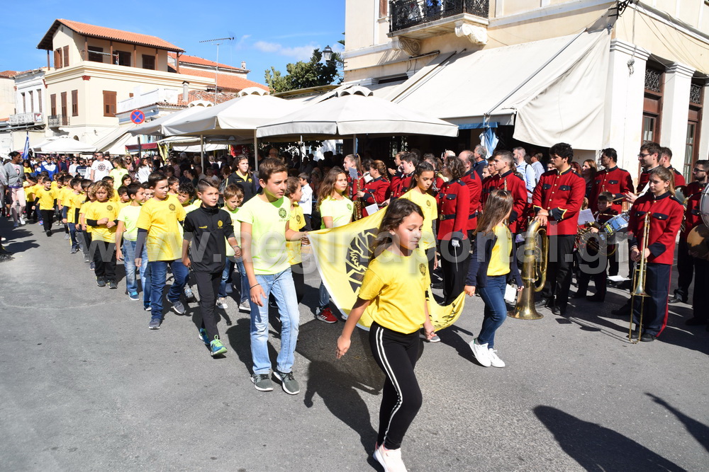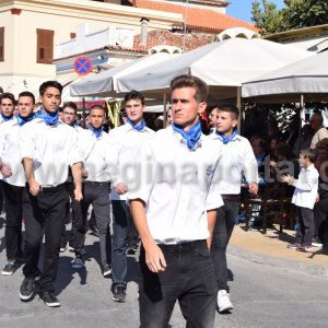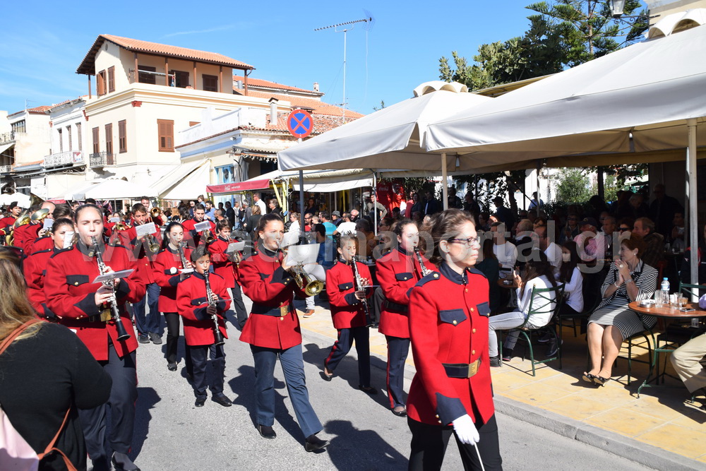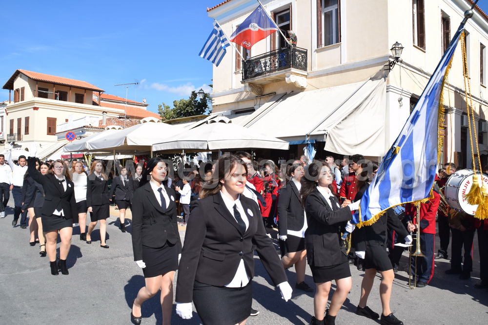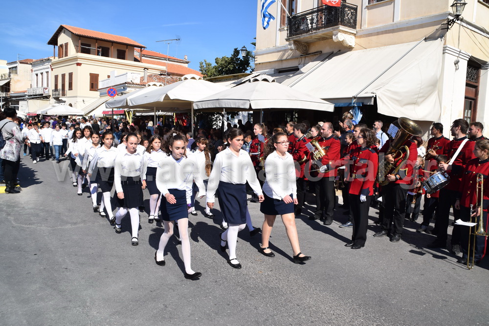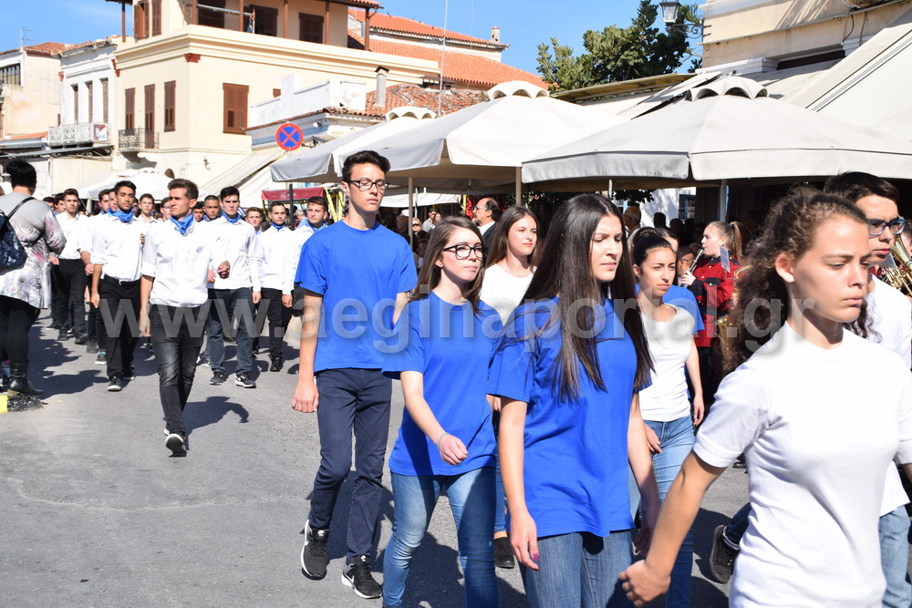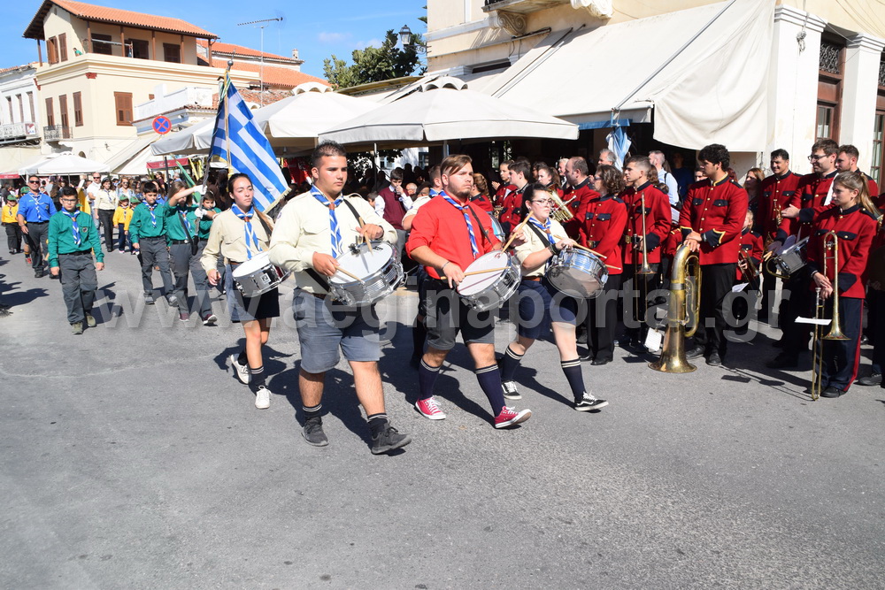 Η μαθητική παρέλαση στην παραλία της Αίγινας για την 28η Οκτωβρίου.