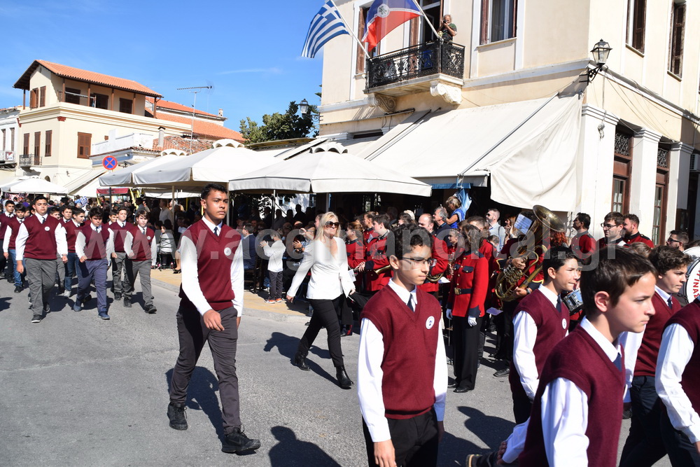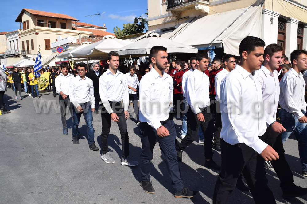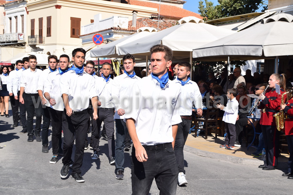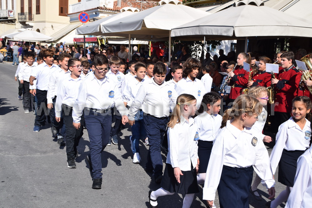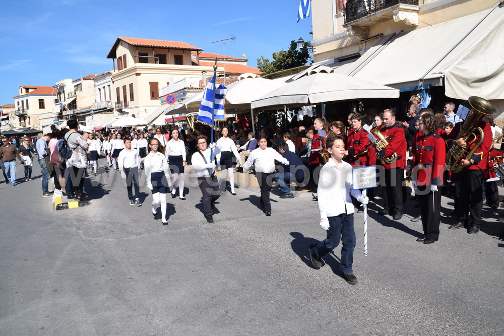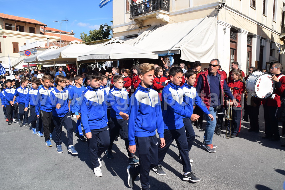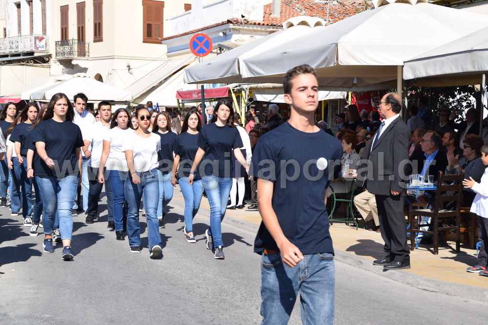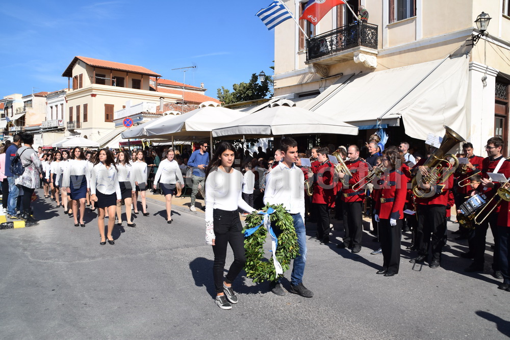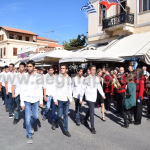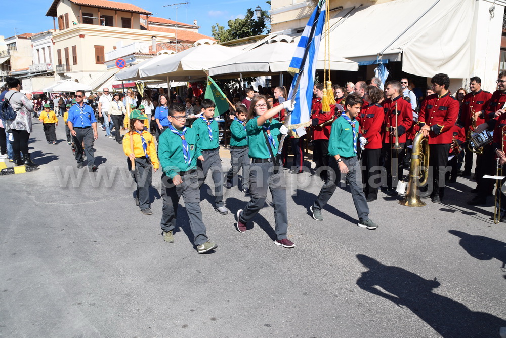 Η μαθητική παρέλαση στην παραλία της Αίγινας για την 28η Οκτωβρίου.