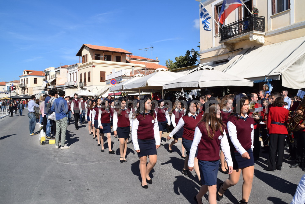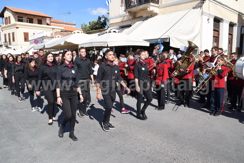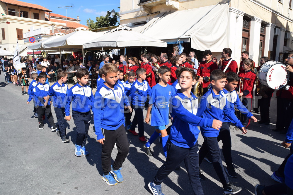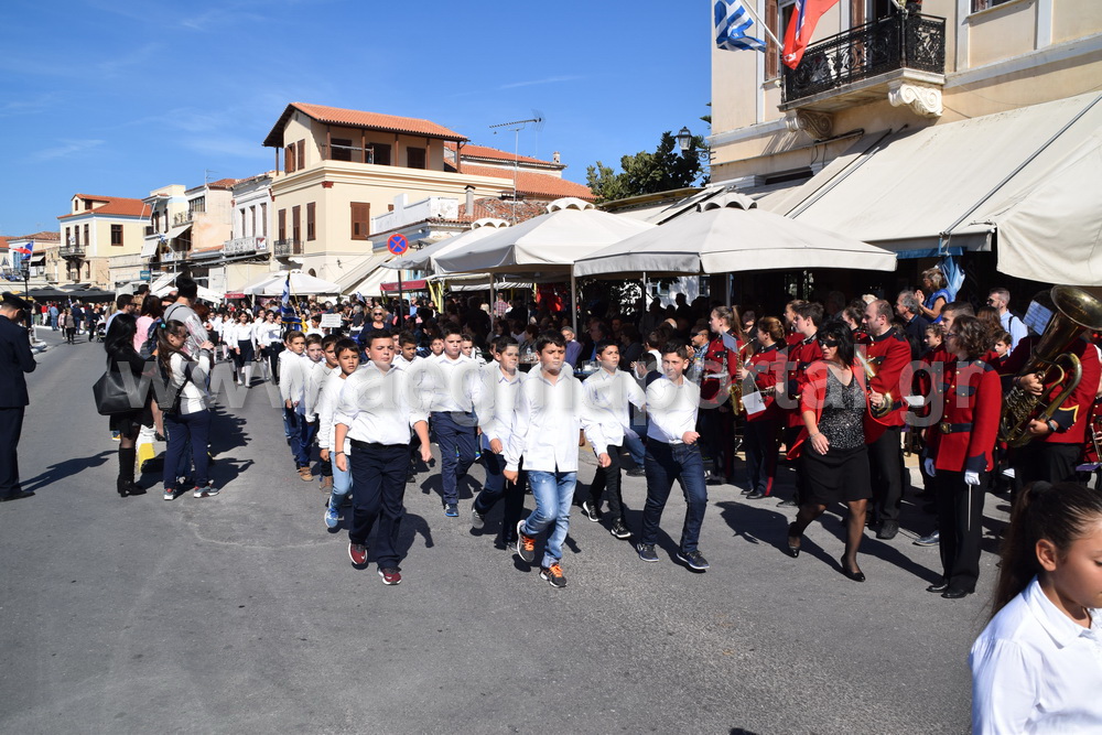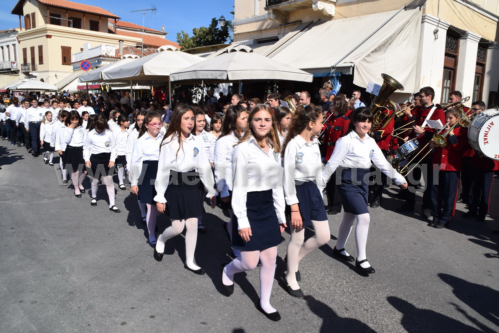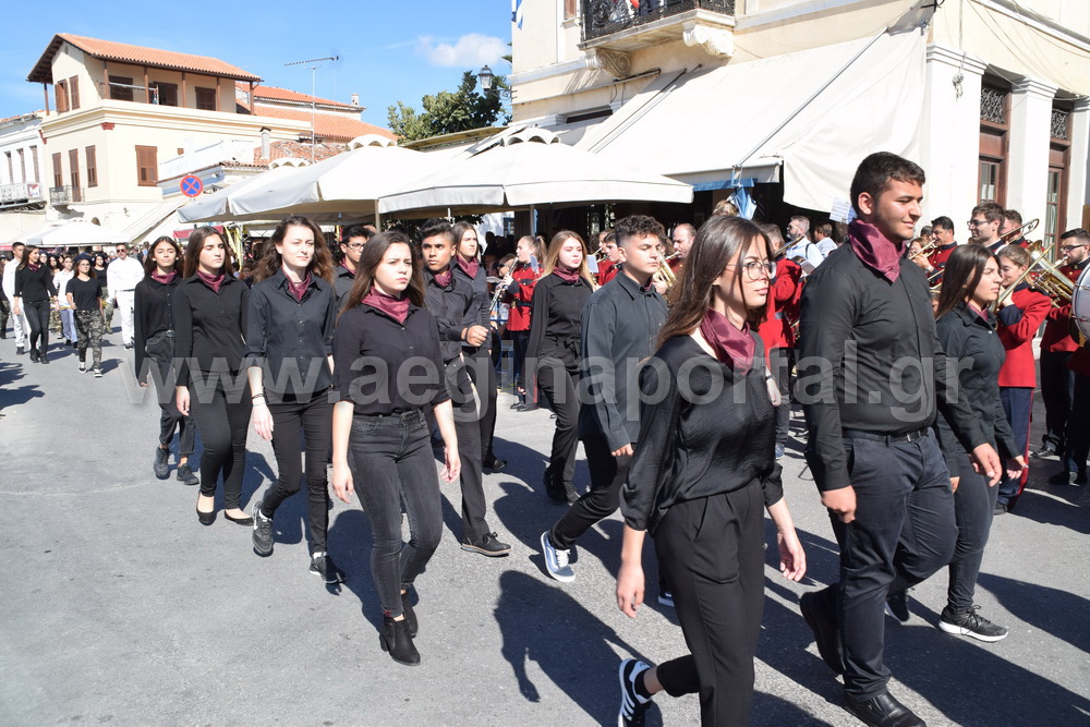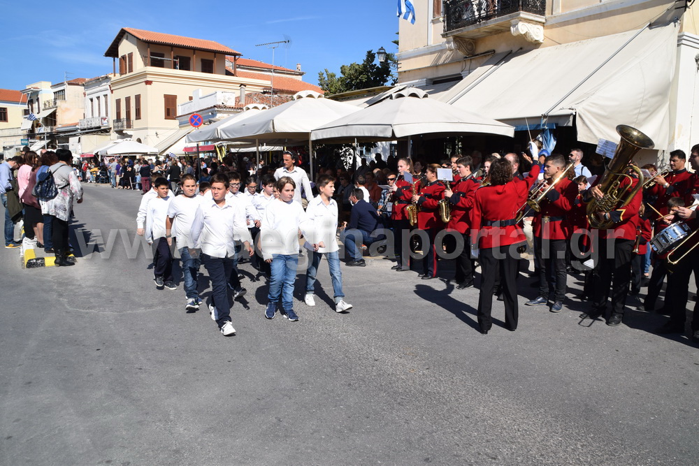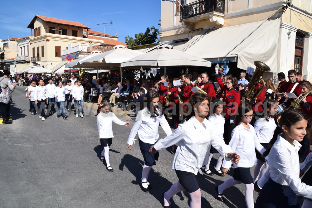Η μαθητική παρέλαση στην παραλία της Αίγινας για την 28η Οκτωβρίου.