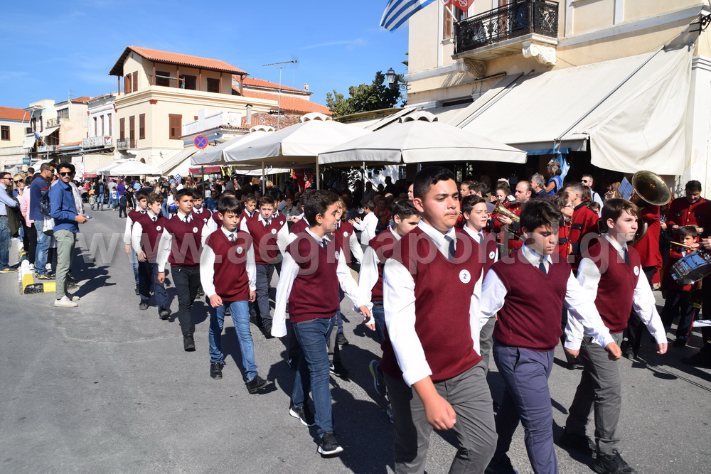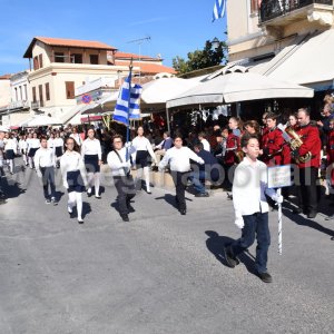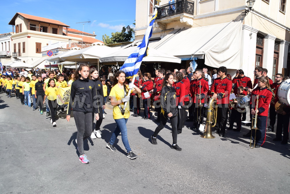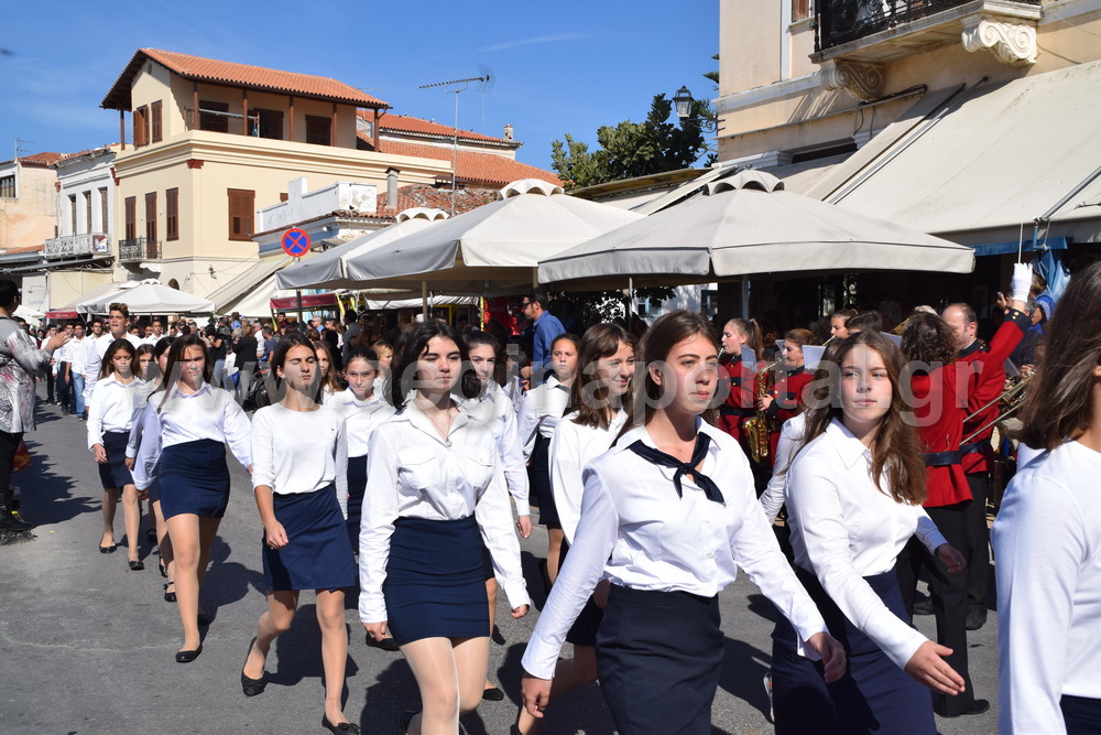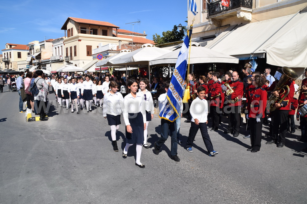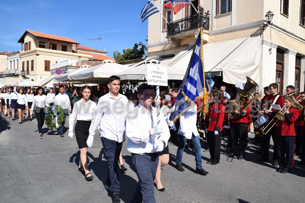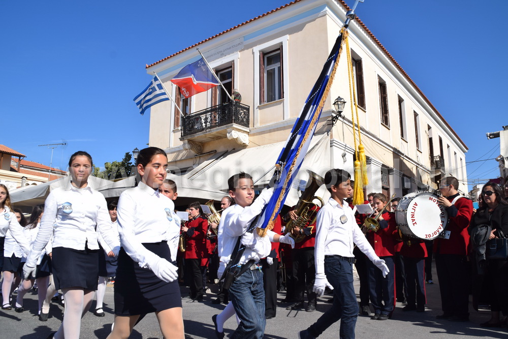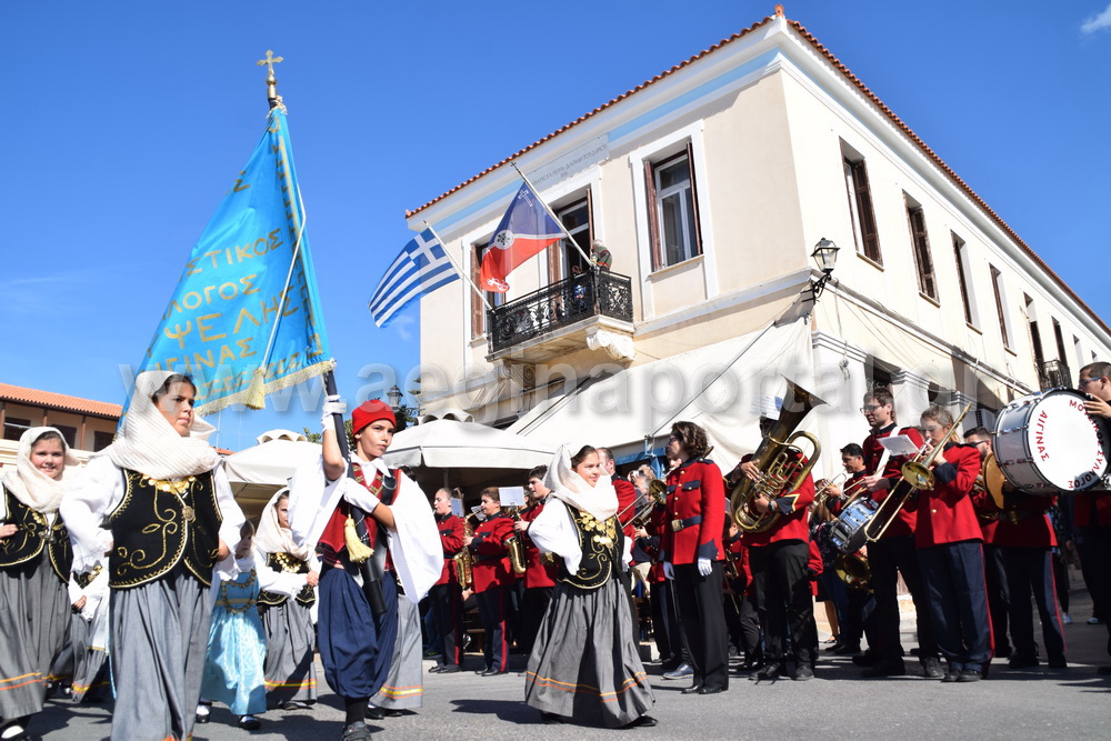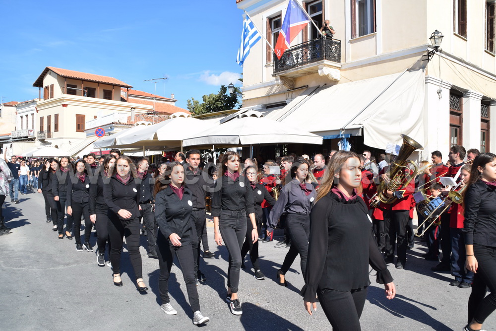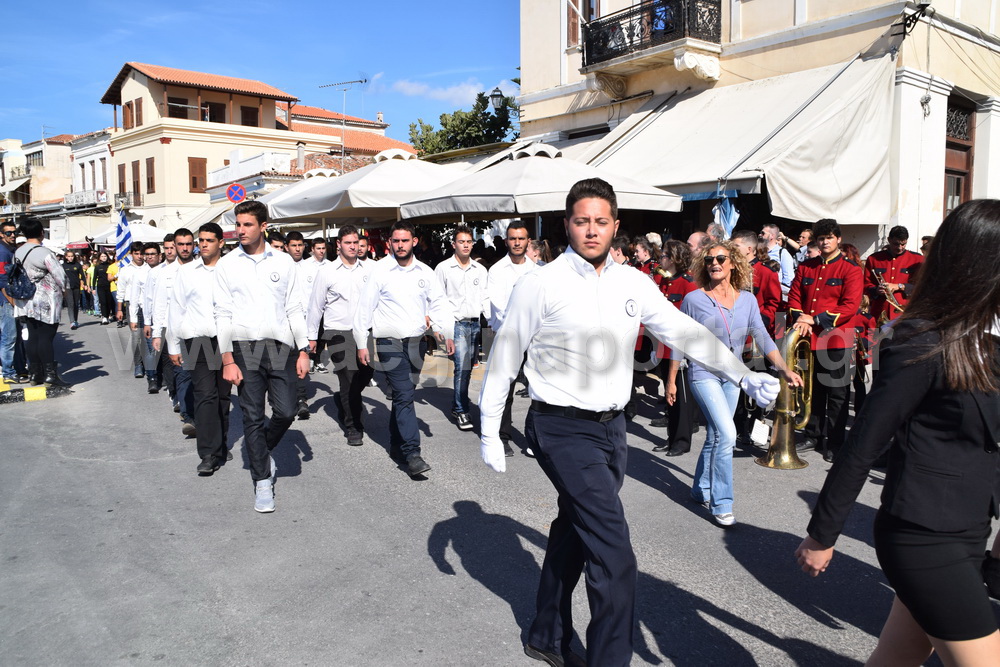 Η μαθητική παρέλαση στην παραλία της Αίγινας για την 28η Οκτωβρίου.