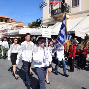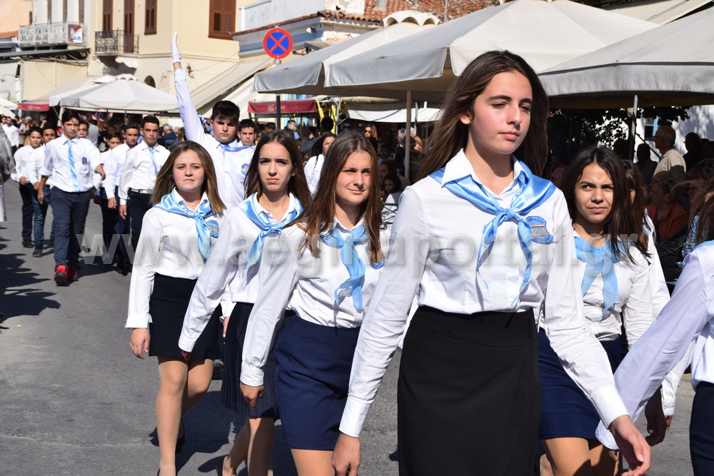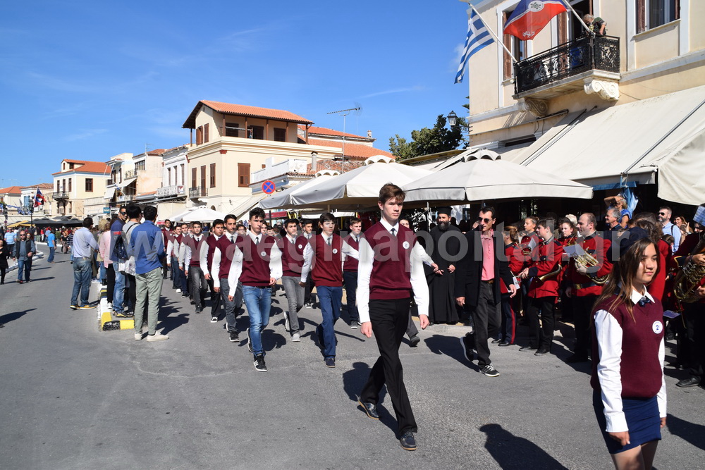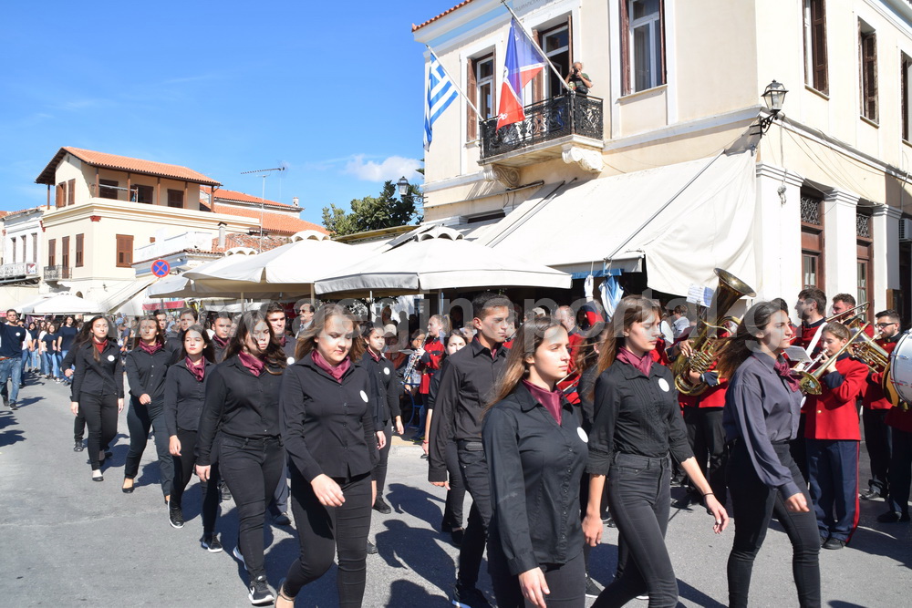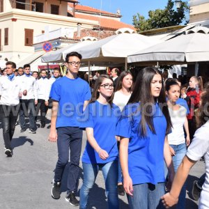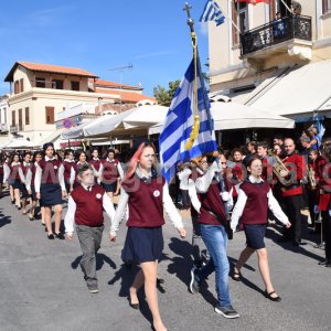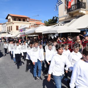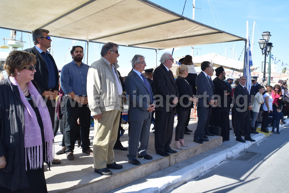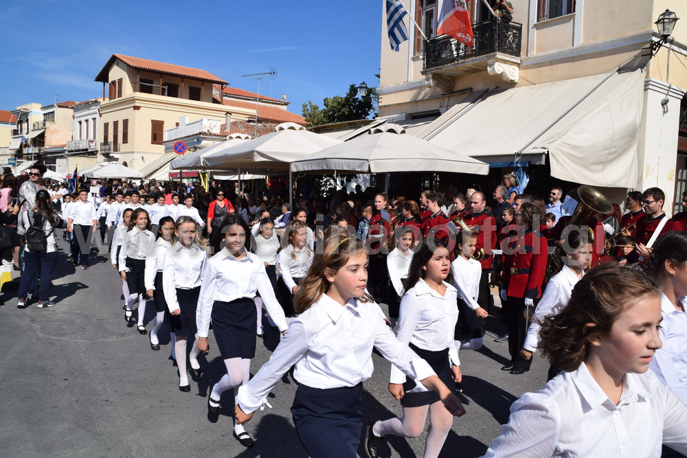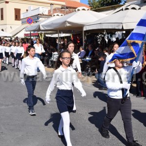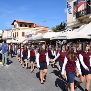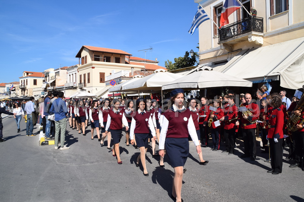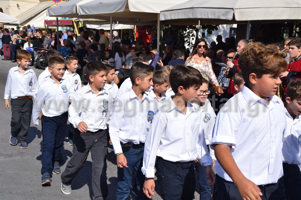 Η μαθητική παρέλαση στην παραλία της Αίγινας για την 28η Οκτωβρίου.