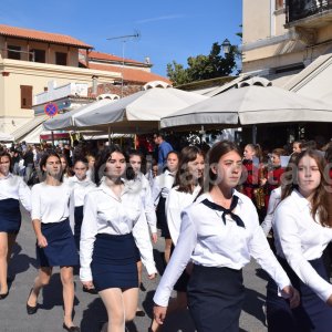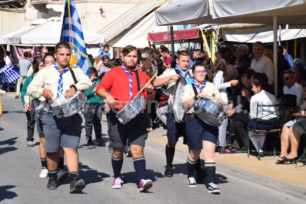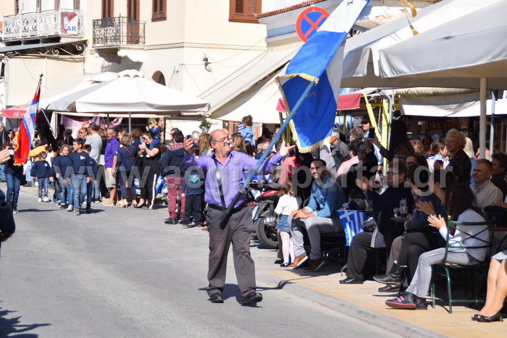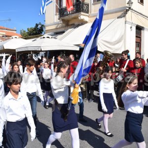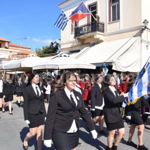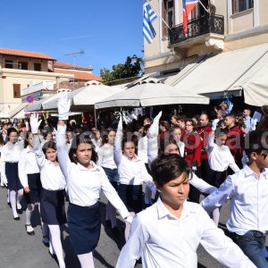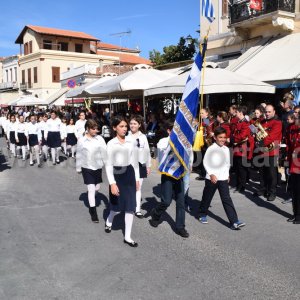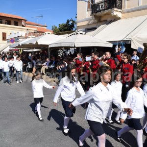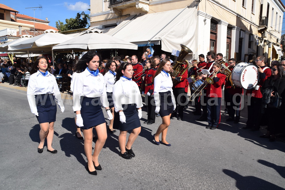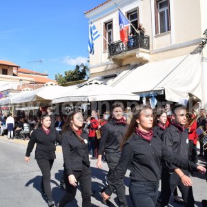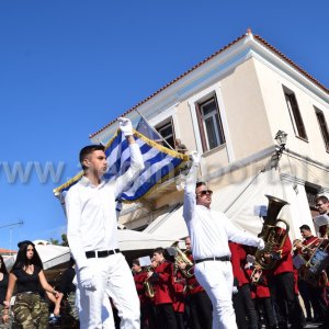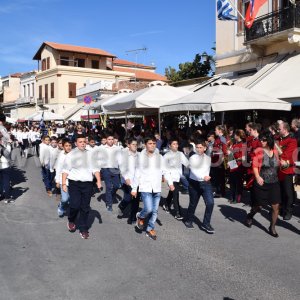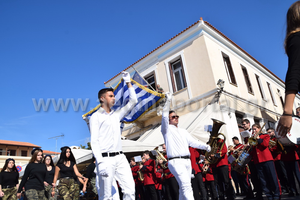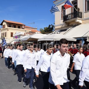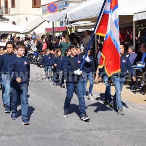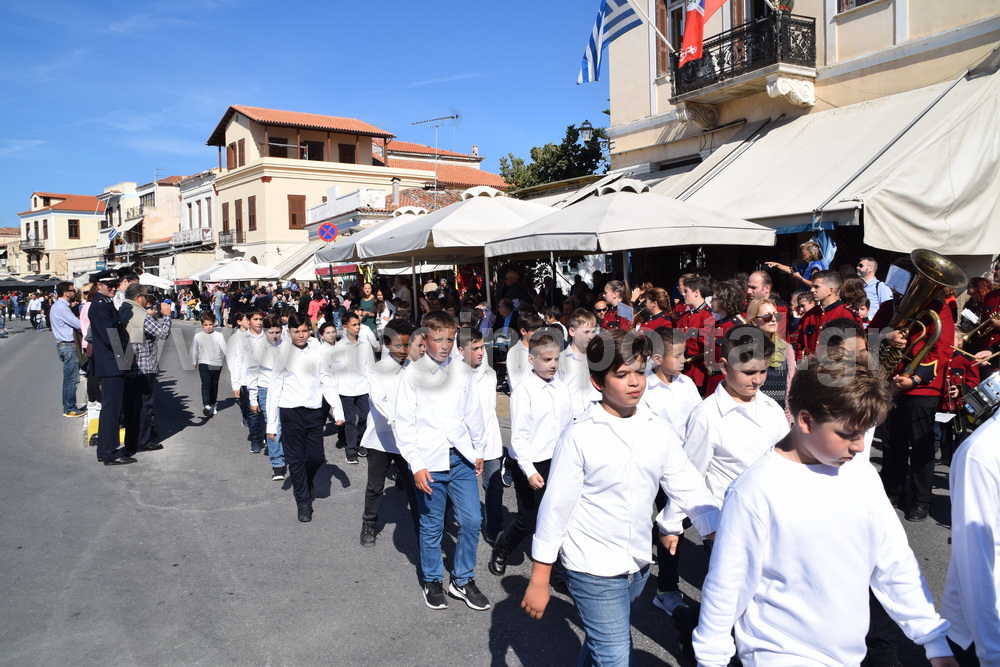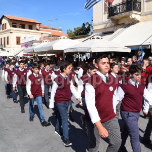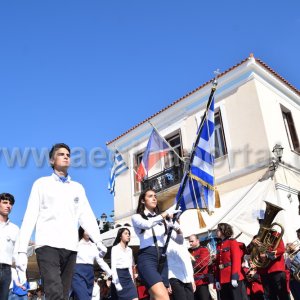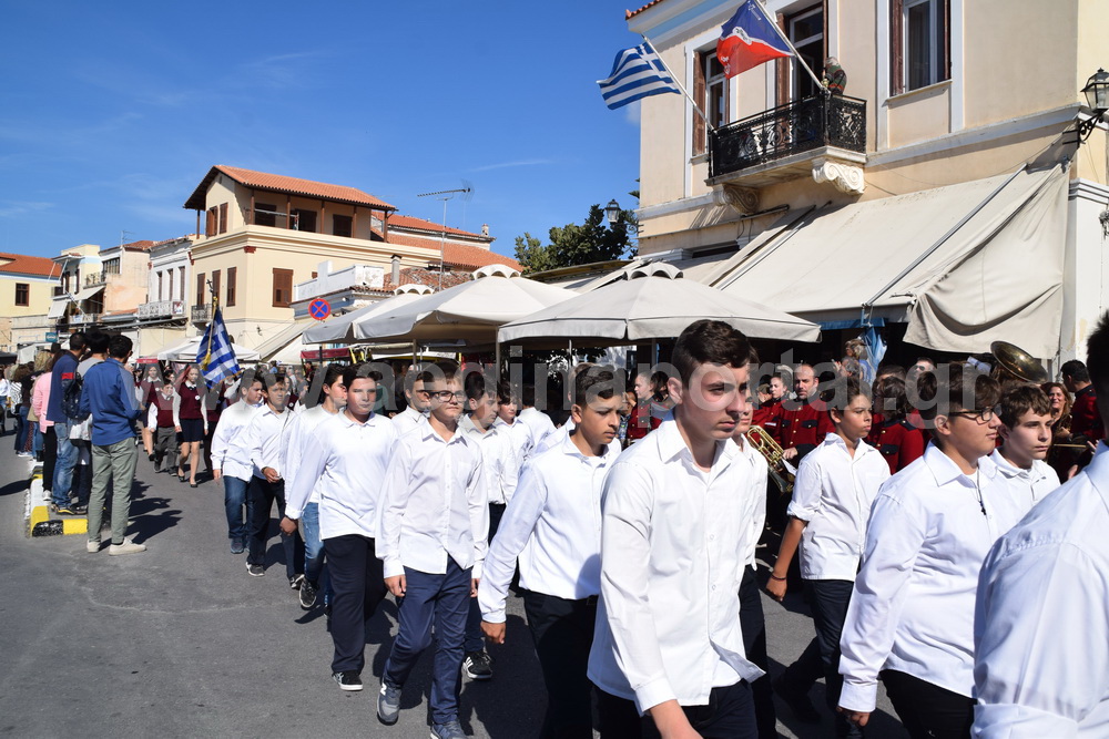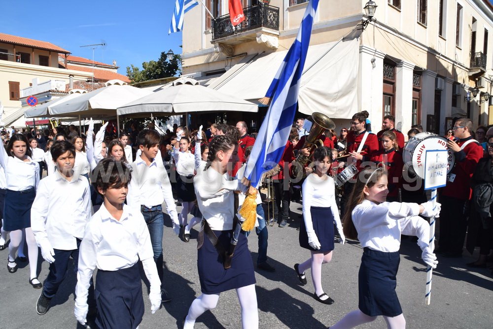 Η μαθητική παρέλαση στην παραλία της Αίγινας για την 28η Οκτωβρίου.