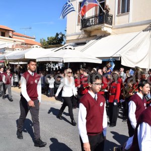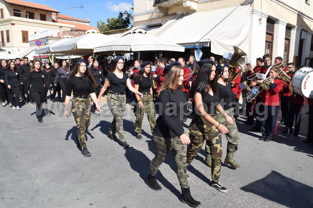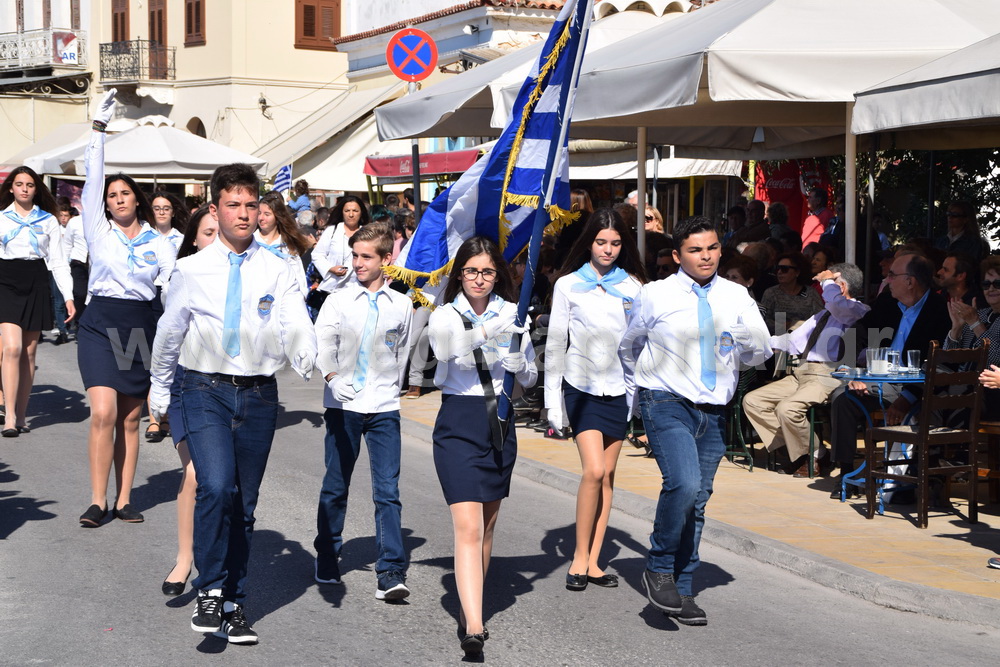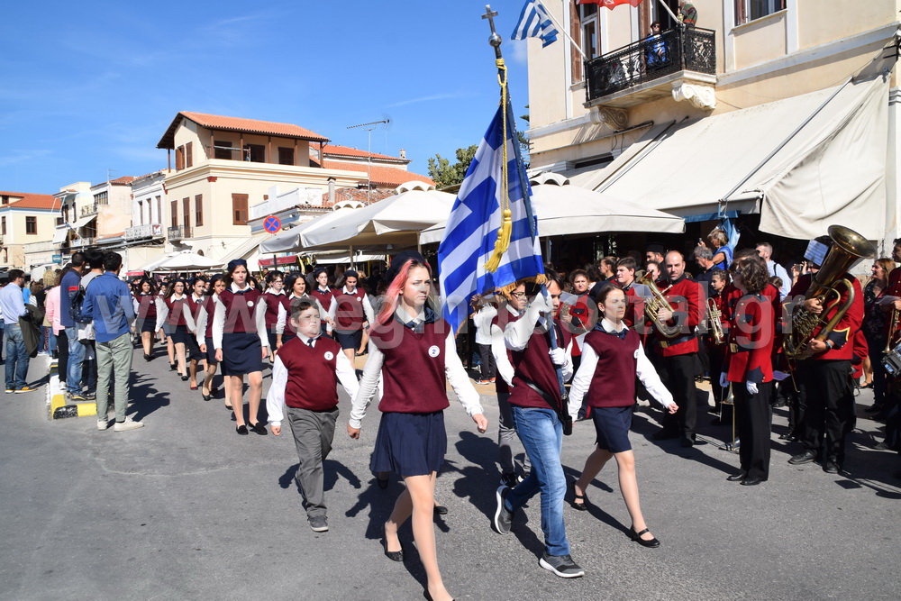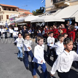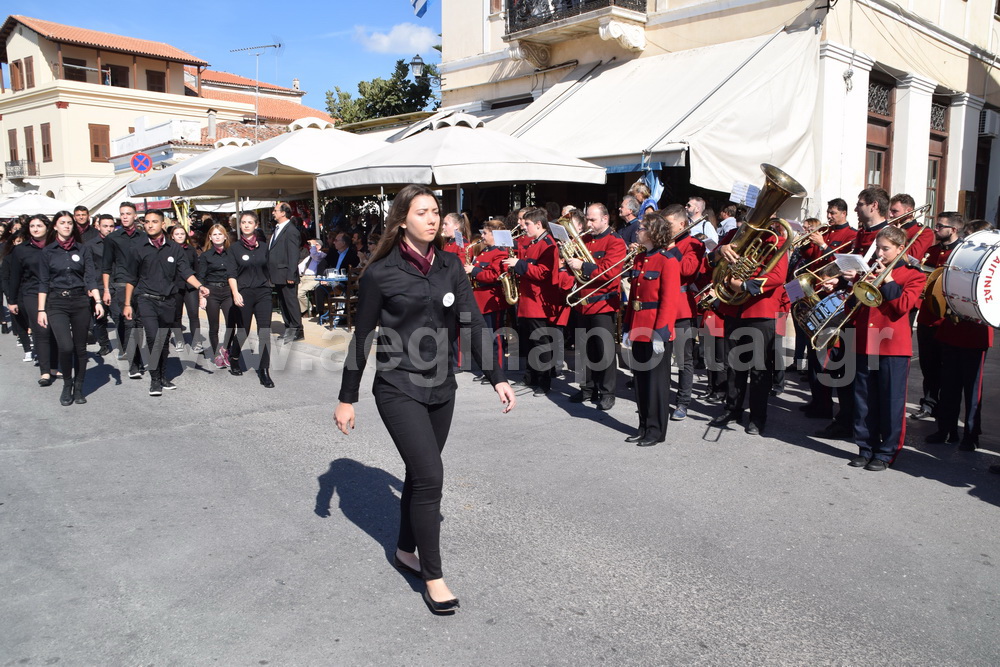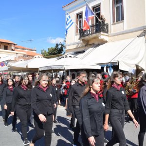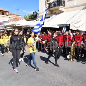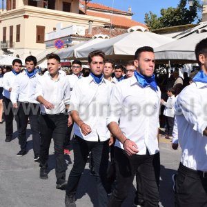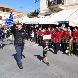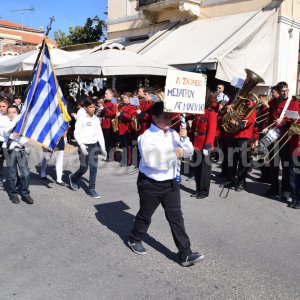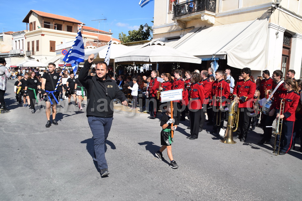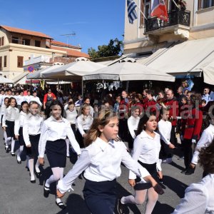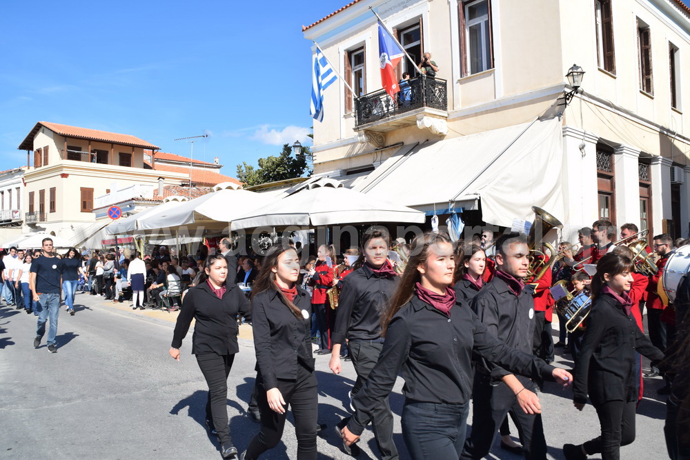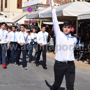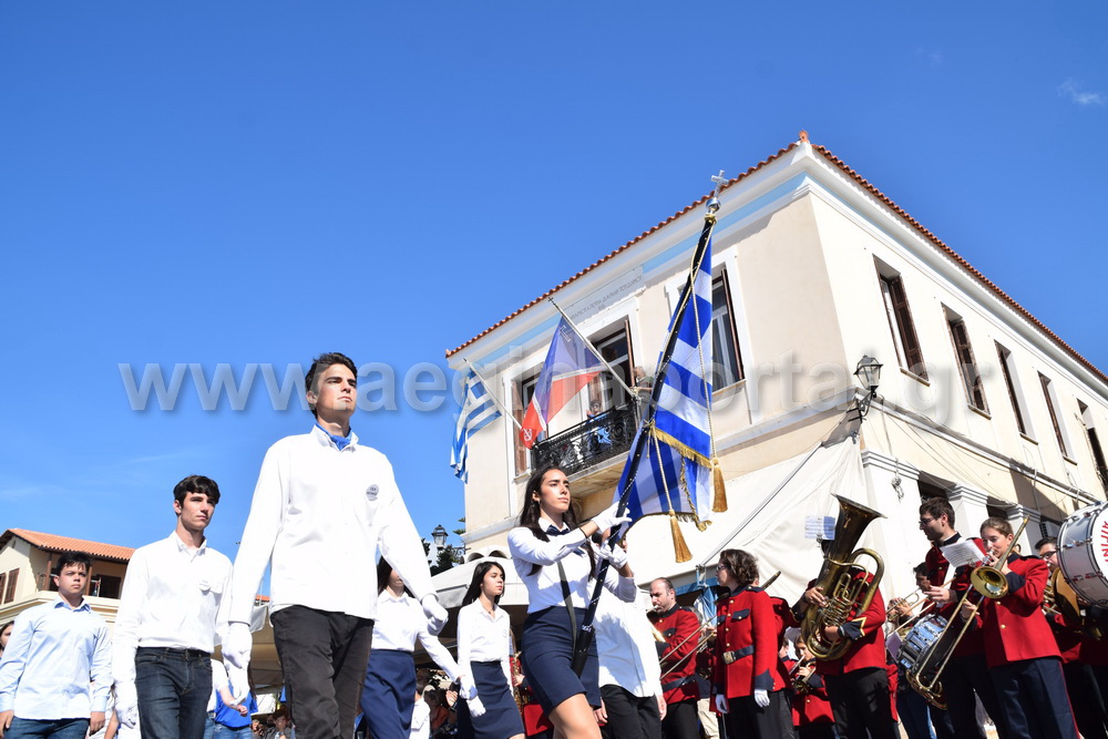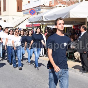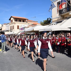 Η μαθητική παρέλαση στην παραλία της Αίγινας για την 28η Οκτωβρίου.