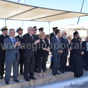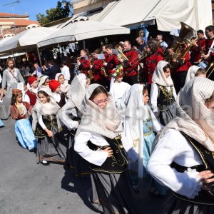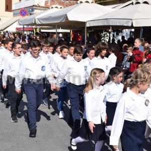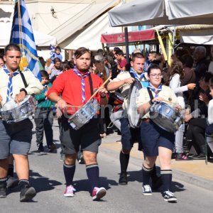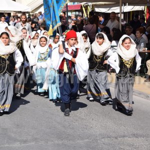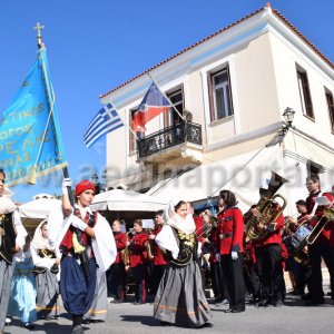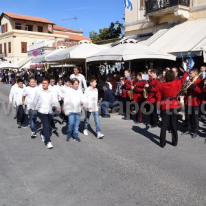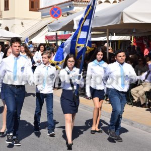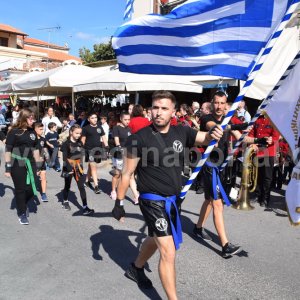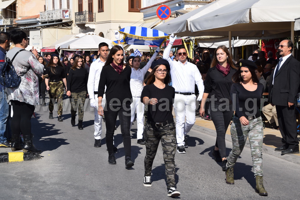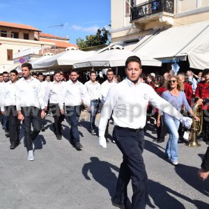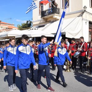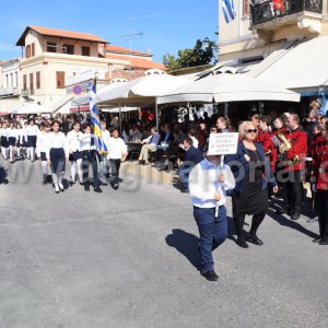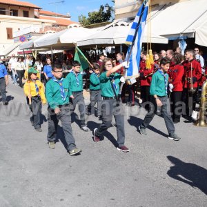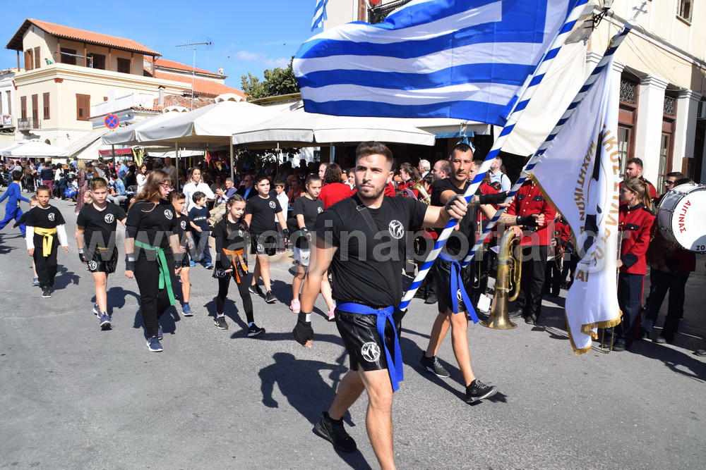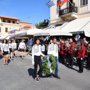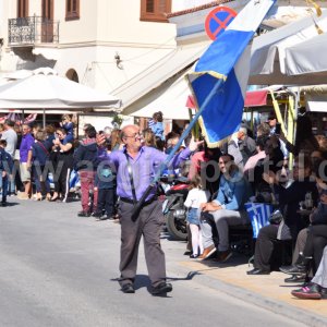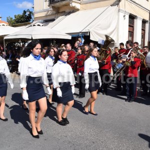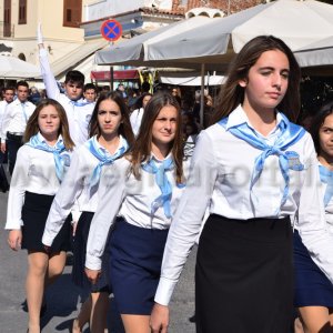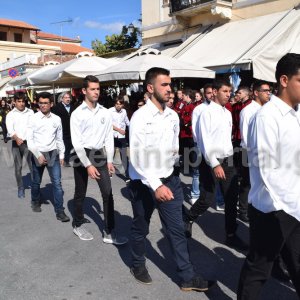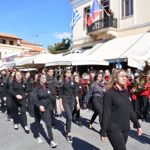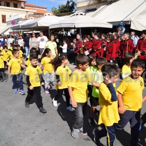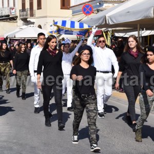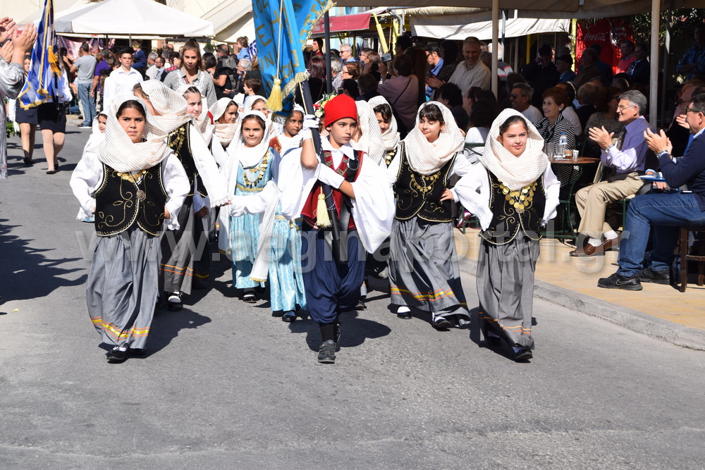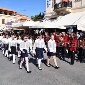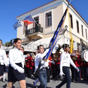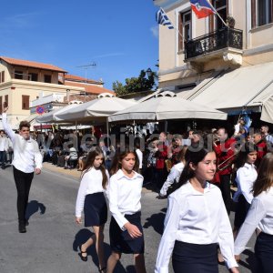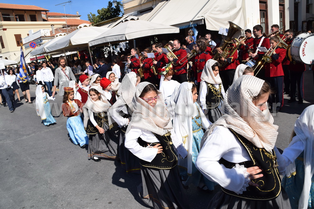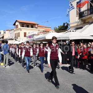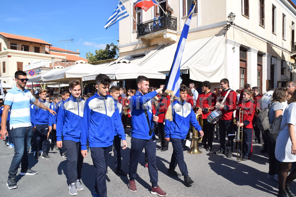 Η μαθητική παρέλαση στην παραλία της Αίγινας για την 28η Οκτωβρίου.