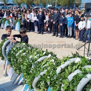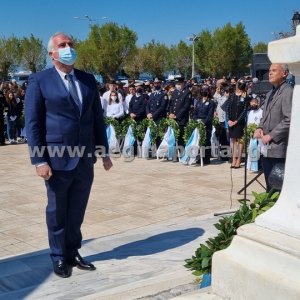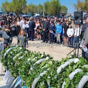 Τρισάγιο και κατάθεση στεφάνων στο μνημείο Πεσόντων Ηρώων, στην Πλατεία Εθνεγερσίας στην Αίγινα, για την 25η Μαρτίου.
