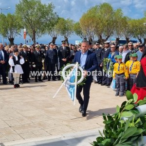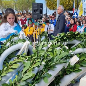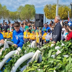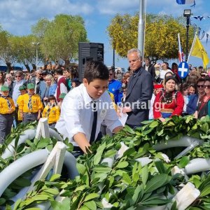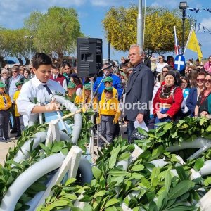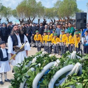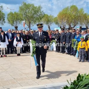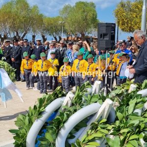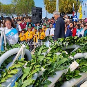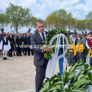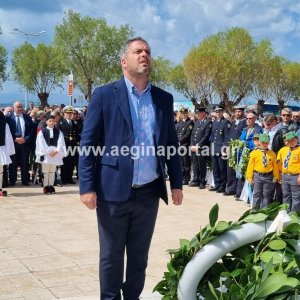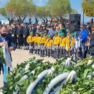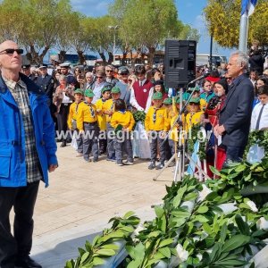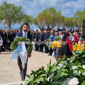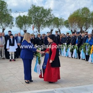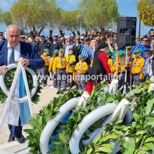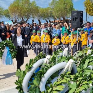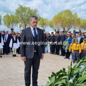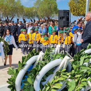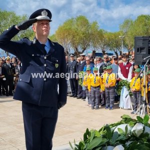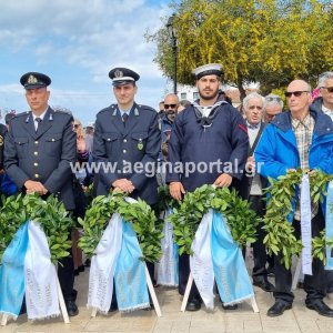 Φωτογραφίες από την επιμνημόσυνη δέηση και την κατάθεση στεφάνων, στο μνημείο Πεσόντων Ηρώων, στην Αίγινα, για τον εορτασμό της 25ης Μαρτίου.