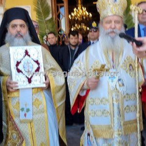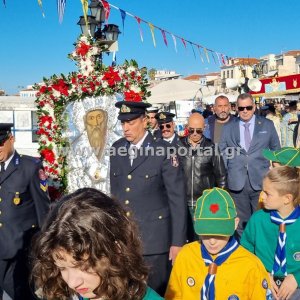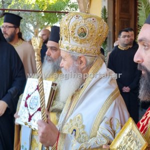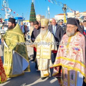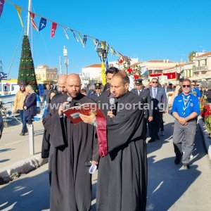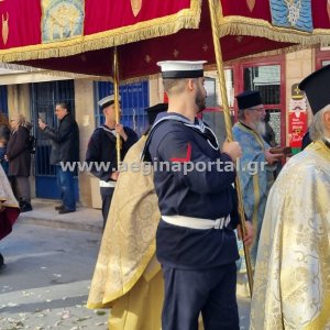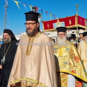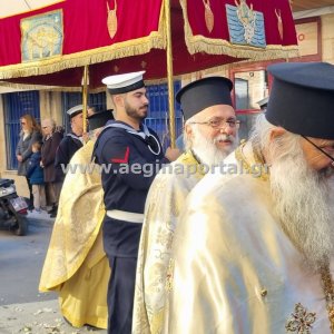 Φωτογραφίες από την λιτάνευση της εικόνας και των ιερών λειψάνων του Αγίου Διονυσίου, πολιούχου της Αίγινας.