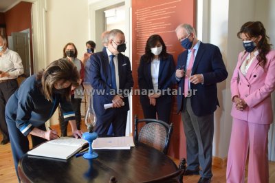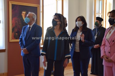 Ο πρόεδρος της Βουλής κ. Κωνσταντίνος Τασούλας, η πρόεδρος της Εθνικής Επιτροπής 2021 κυρία Γιάννα Αγγελοπούλου και ο δήμαρχος Αίγινας κ. Γιάννης Ζορμπάς έκοψαν την κόκκινη κορδέλα των εγκαινίων της έκθεσης: "Το Κυβερνείο της Αίγινας υποδέχεται και πάλι τον Ιωάννη Καποδίστρια". Ακολούθησε ξενάγηση στην έκθεση από τη Διευθύντρια της βιβλιοθήκης της Βουλής των Ελλήνων Ελένη Δρούλια και την Αναπληρώτρια Διευθύντρια των Γενικών Αρχείων του Κράτους, Αμαλία Παππά, παρουσία του επιμελητή της έκθεσης, ζωγράφου και σκηνογράφου της Βουλής των Ελλήνων, Γιάννη Μετζικώφ.
