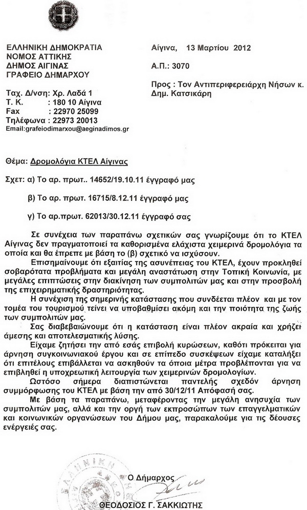 Εδώ μπορείτε να δείτε το έγγραφο που απέστειλε ο Δήμος Αίγινας στον αντιπεριφερειάρχη κύριο Δημήτρη Κατσικάρη.