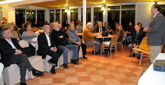 Μετά την σύντομη παρουσίαση από τον κύριο Σπύρου, ο δήμαρχος της Αίγινας κύριος Παναγιώτης Κουκούλης απηύθυνε χαιρετισμό, κάνοντας αναφορά τόσο στη σχέση των Αιγινητών με τη θάλασσα, όπως αυτή καταγράφεται από την αρχαιότητα μέχρι και σε πρόσφατα ιστορικά και λαογραφικά κείμενα, ενώ χαιρέτησε με εγκαρδιότητα την πρωτοβουλία του Ελληνικού Ινστιτούτου Ναυτικής Τεχνολογίας να πραγματοποιήσει αυτή την ημερίδα στην Αίγινα. Ακολούθησε η εισήγηση του κυρίου Κωνσταντίνου Περδικάρη, ναυπηγού, με θέμα τις ευρωπαϊκές οδηγίες και το πως αυτές θα διαμορφώσουν το σκηνικό σε επιβατηγά σκάφη που εκτελούν δρομολόγια από λιμάνι σε λιμάνι μέχρι τριάντα ναυτικά μίλια. Αρκετά σημεία της εισήγησης, έδωσαν "τροφή" για συζήτηση σε απορίες κατοίκων της Αίγινας. Ιδιαίτερο ενδιαφέρον παρουσίασε η συζήτηση που άνοιξε με θέμα τα καυσαέρια των πλοίων.