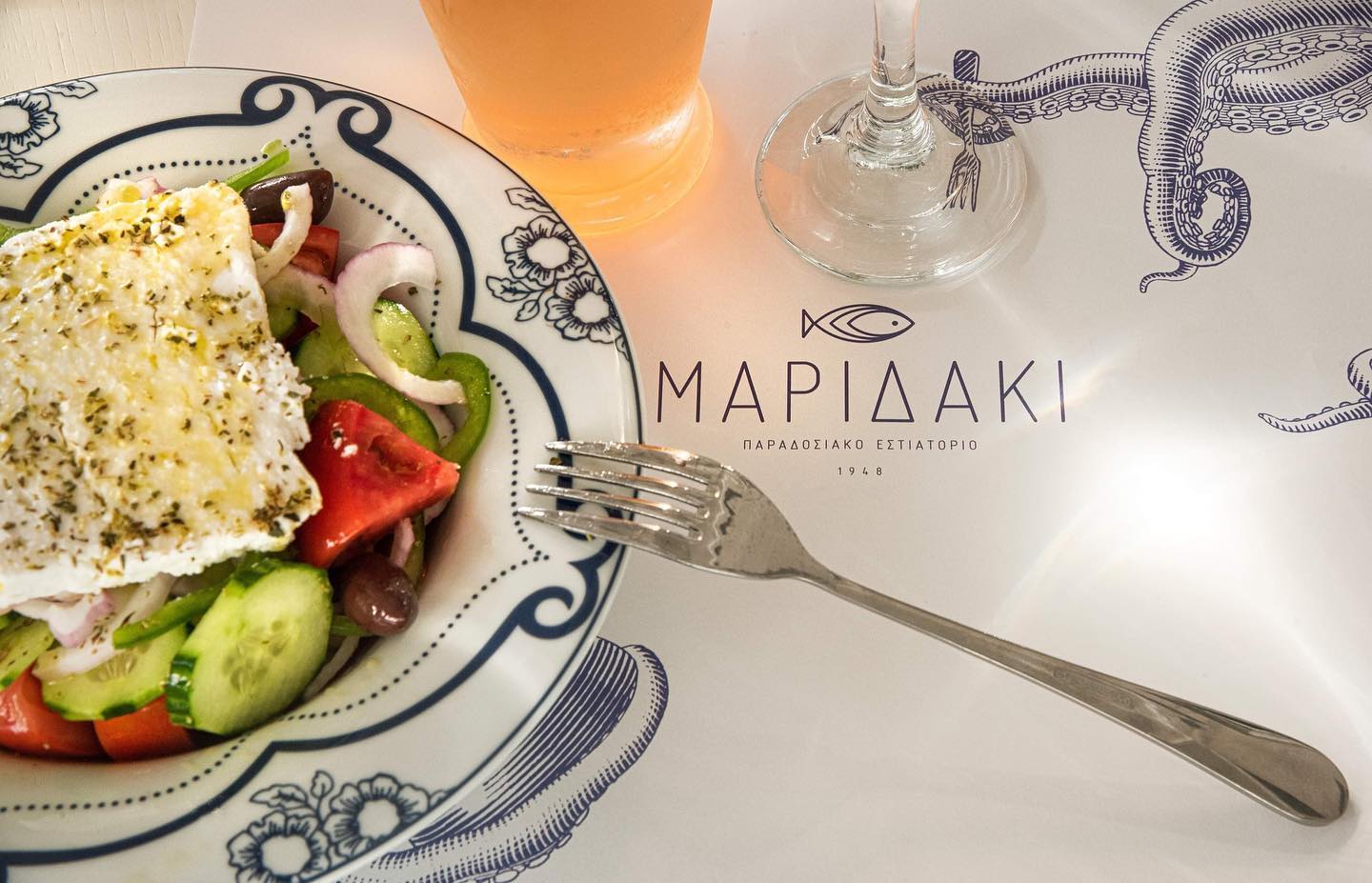 Το Μαριδάκι ξεκίνησε τη λειτουργία του το 1948 και οι ιστορίες που το συνοδεύουν είναι αναρίθμητες, δεμένες με τους ανθρώπους που το αγάπησαν και απόλαυσαν τη θαλπωρή του καλού φαγητού. Πρόσφατα, ανακαινίστηκε από τον νέο ιδιοκτήτη Κυριάκο Κλώνο, ο οποίος διατήρησε τα σημαντικά στοιχεία του χώρου και του κτηρίου, προσθέτοντας φωτεινότητα και ήπιους χρωματικούς τόνους που συνδέουν το εσωτερικό με το λευκό και το γαλάζιο του λιμανιού και του ορίζοντα.