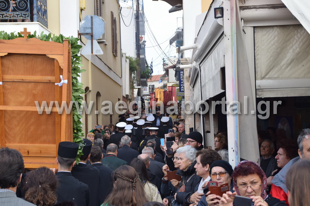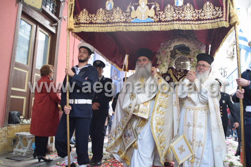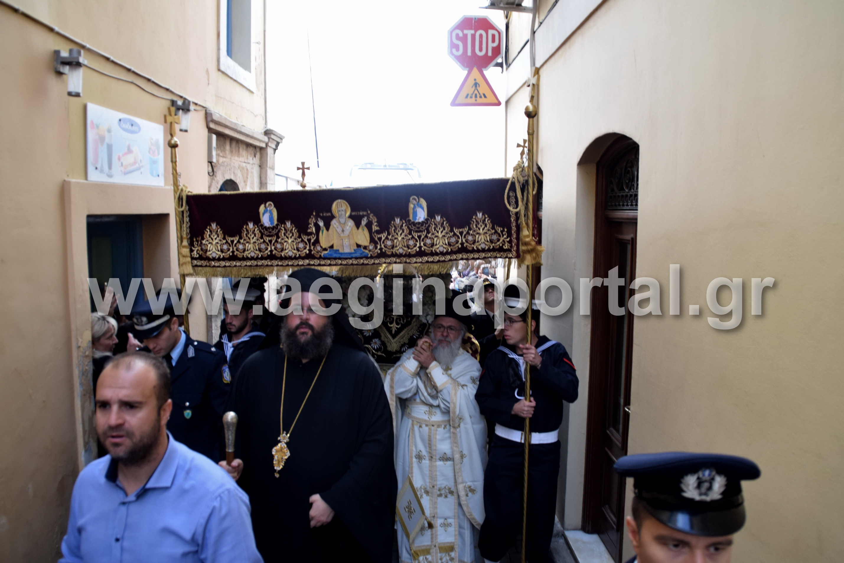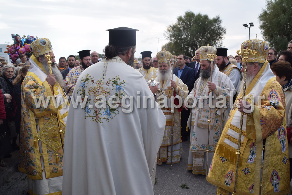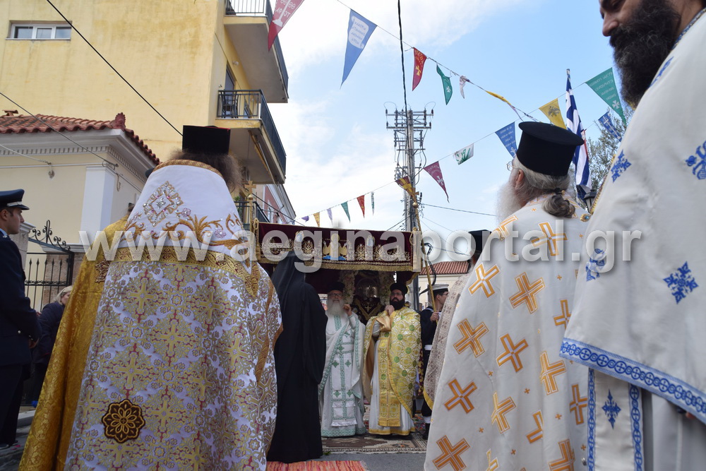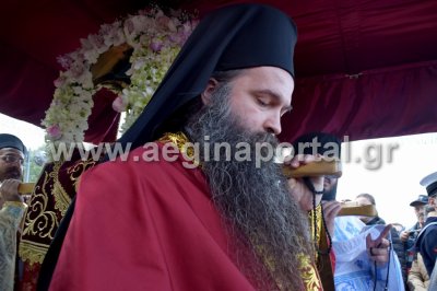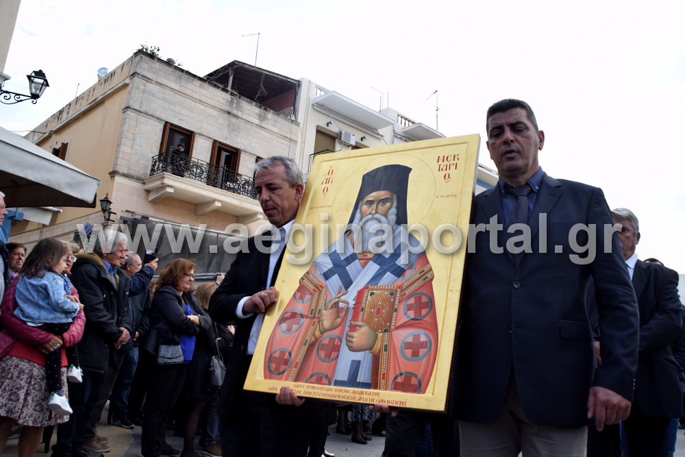 Η λιτανεία των τιμίων Λειψάνων και της εικόνας του Αγίου Νεκταρίου στην Αίγινα.
