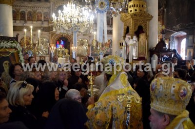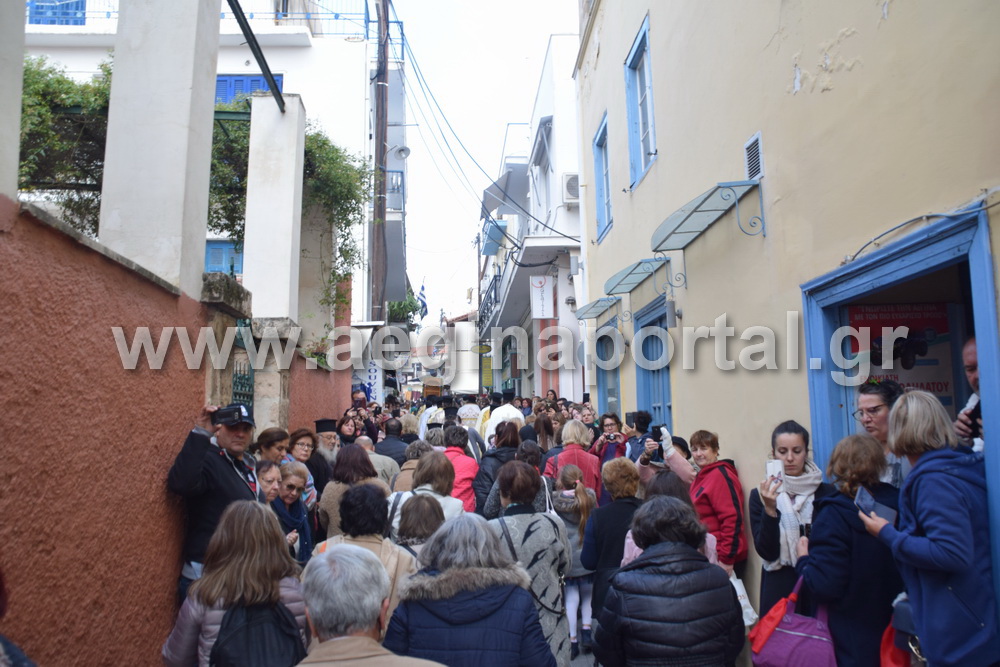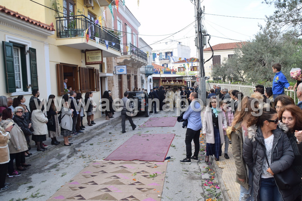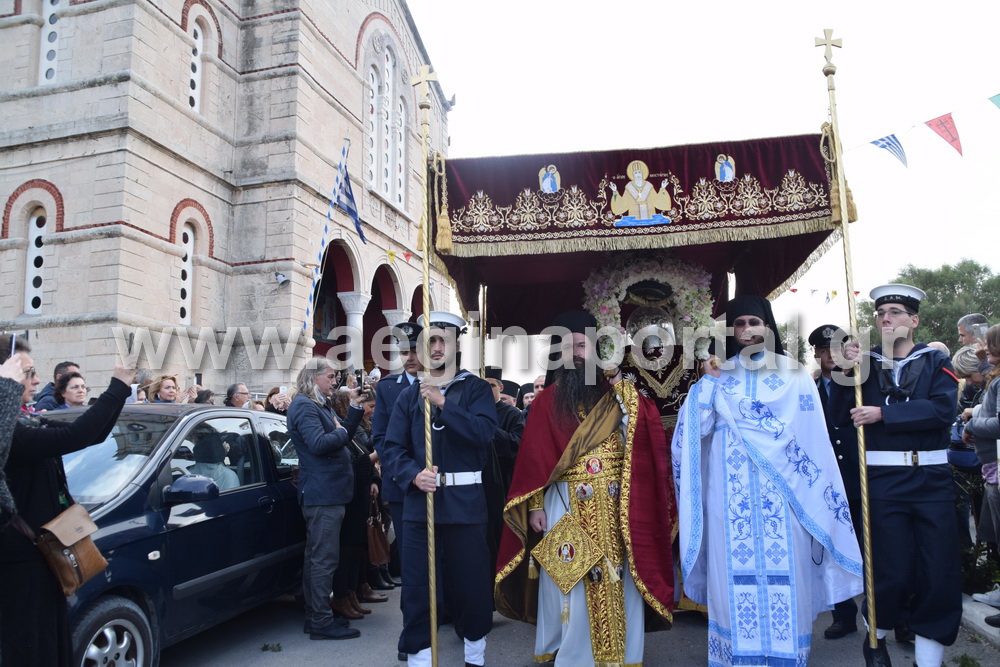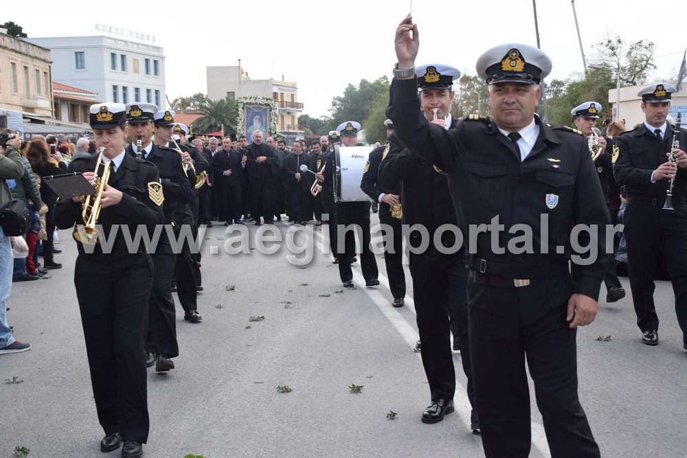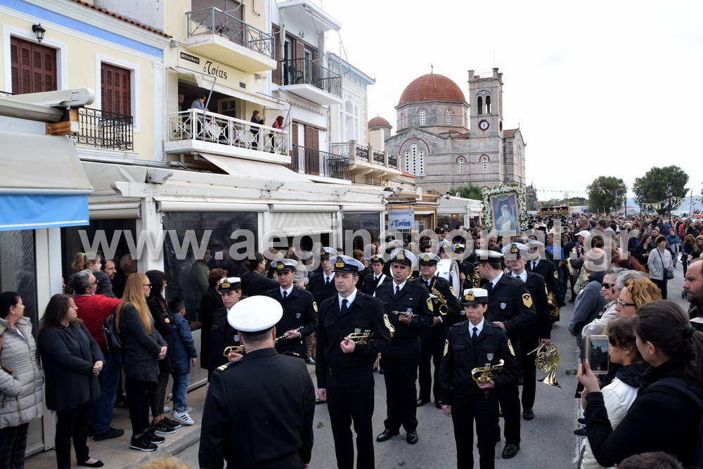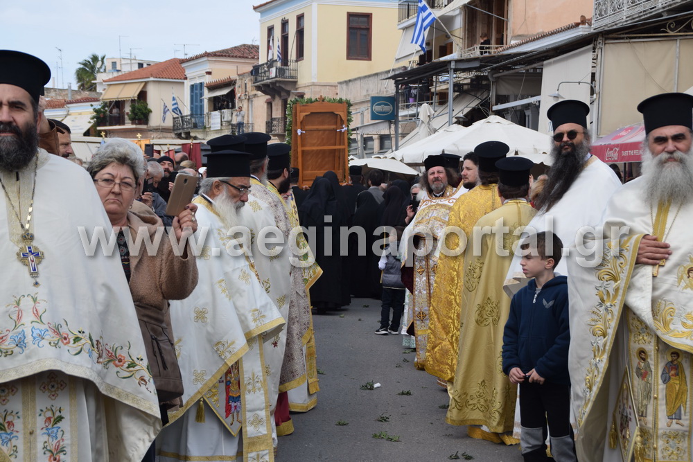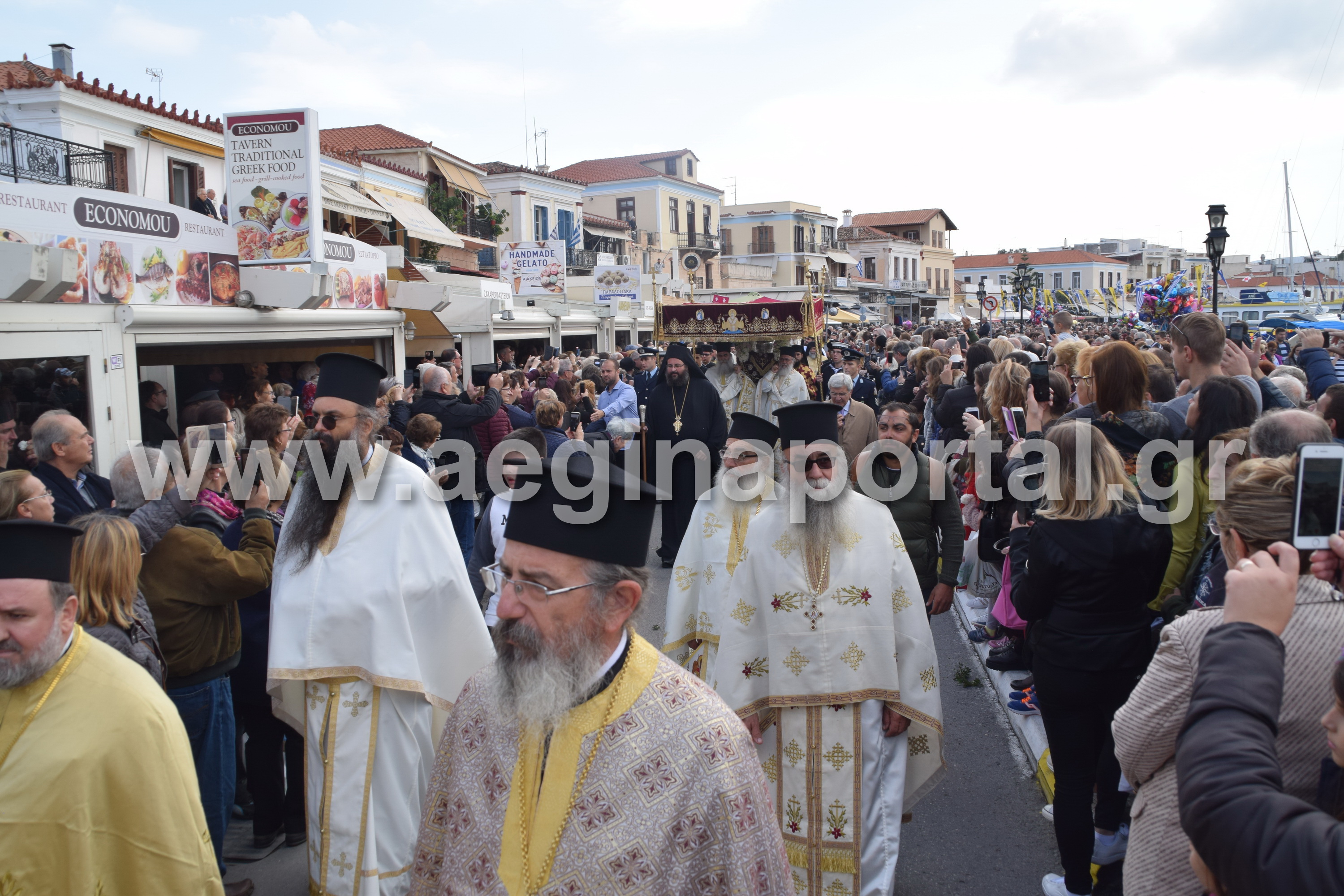 Η λιτανεία των τιμίων Λειψάνων και της εικόνας του Αγίου Νεκταρίου στην Αίγινα.