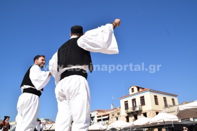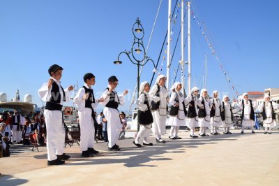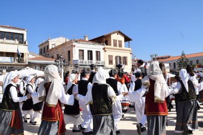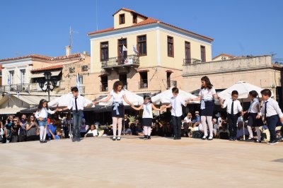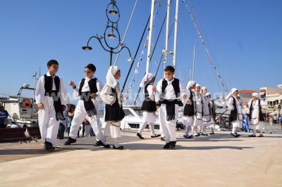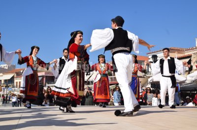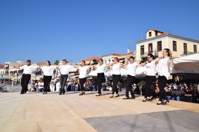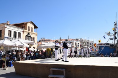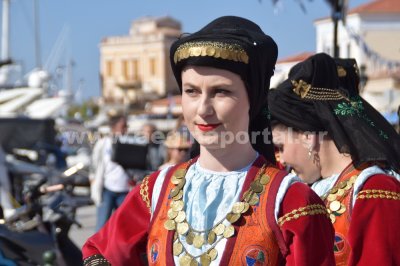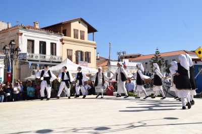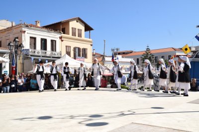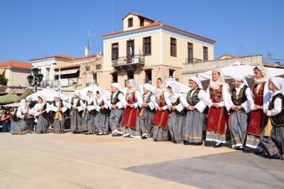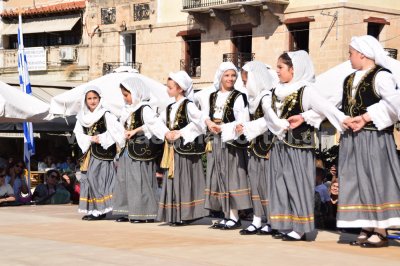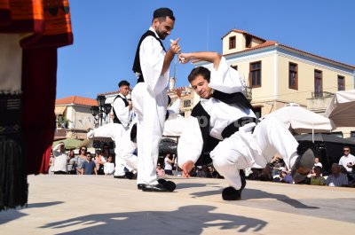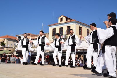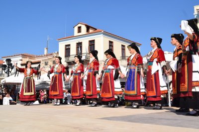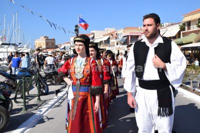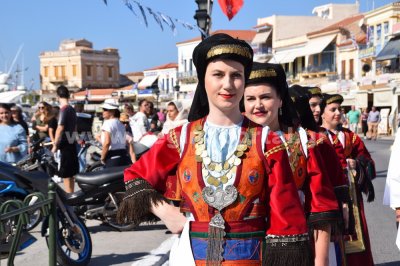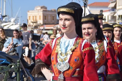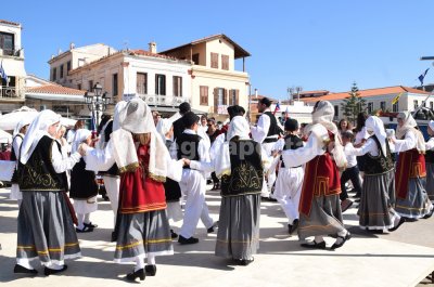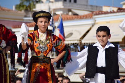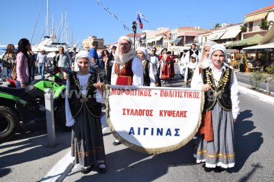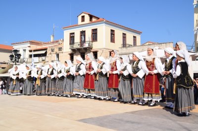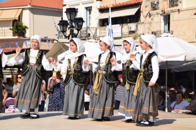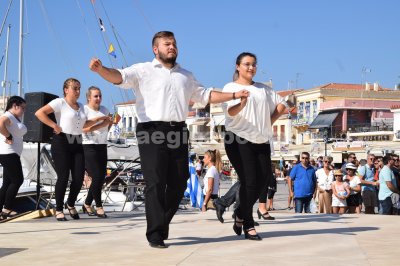 Παραδοσιακοί χοροί στην παραλία της Αίγινας, για τον εορτασμό της εθνικής επετείου της 28ης Οκτωβρίου.