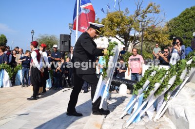 Φωτογραφίες από το τρισάγιο και την κατάθεση στεφάνων στο Ηρώο Πεσόντων, για τον εορτασμό της 28ης Οκτωβρίου στην Αίγινα.