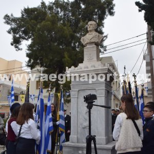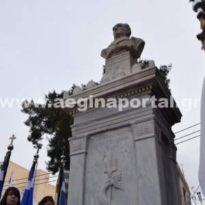 Φωτογραφίες από την επιμνημόσυνη δέηση και την κατάθεση στεφάνων στο μνημείο του Ιωάννη Καποδίστρια στην Αίγινα.