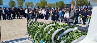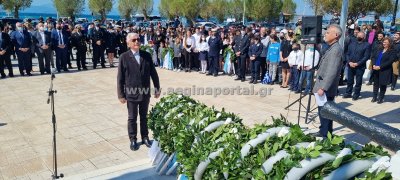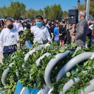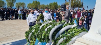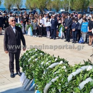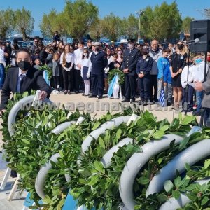 Τρισάγιο και κατάθεση στεφάνων στο μνημείο Πεσόντων Ηρώων, στην Πλατεία Εθνεγερσίας στην Αίγινα, για την 25η Μαρτίου.