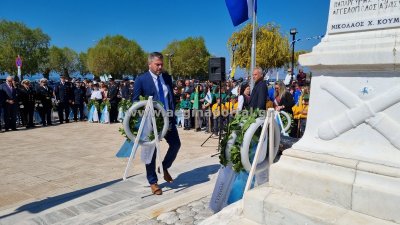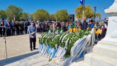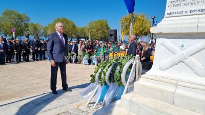 Τρισάγιο και κατάθεση στεφάνων στο μνημείο Πεσόντων Ηρώων, στην πλατεία Εθνεγερσίας για την 25η Μαρτίου. Φωτογραφίες.