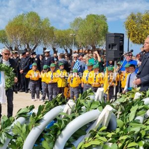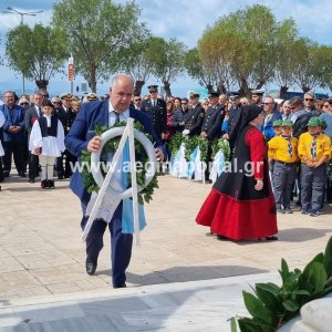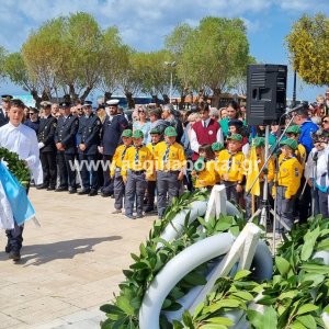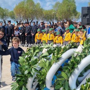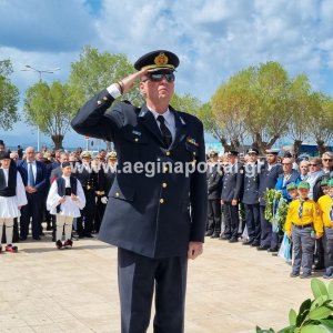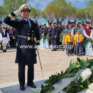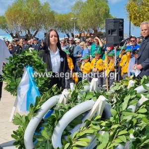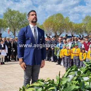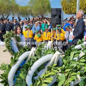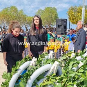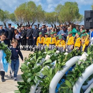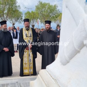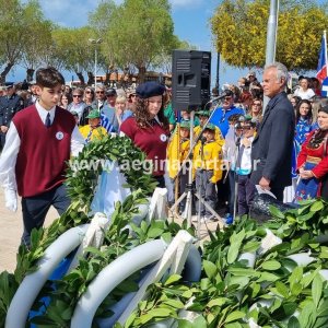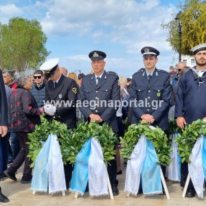 Φωτογραφίες από την επιμνημόσυνη δέηση και την κατάθεση στεφάνων, στο μνημείο Πεσόντων Ηρώων, στην Αίγινα, για τον εορτασμό της 25ης Μαρτίου.
