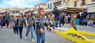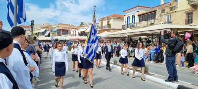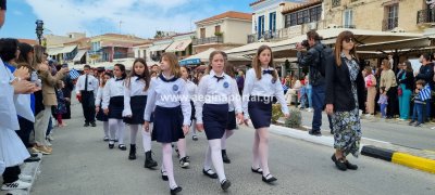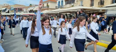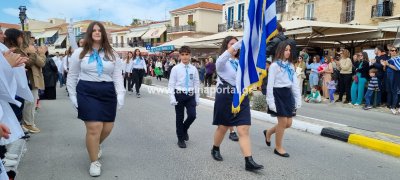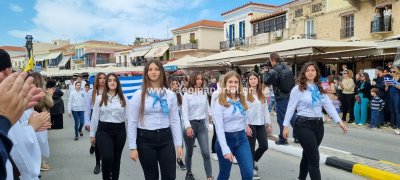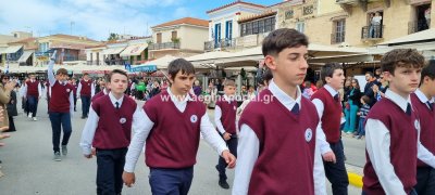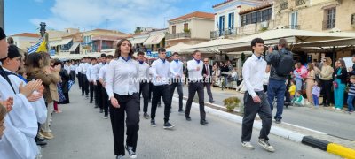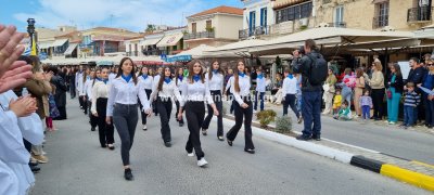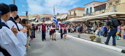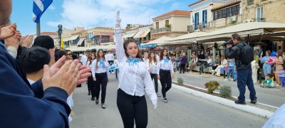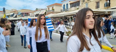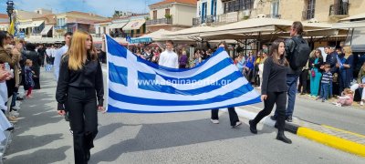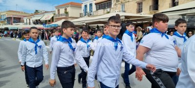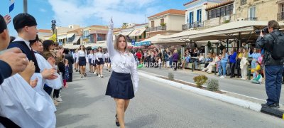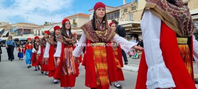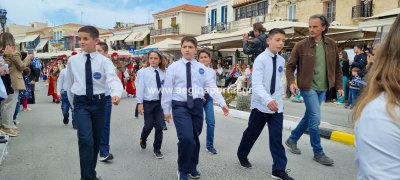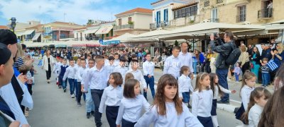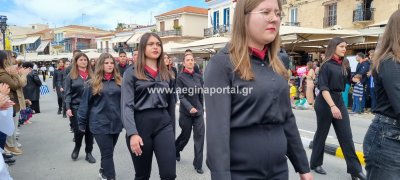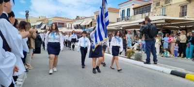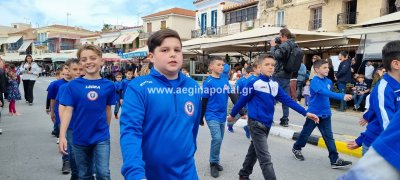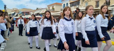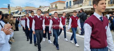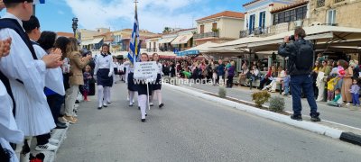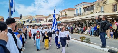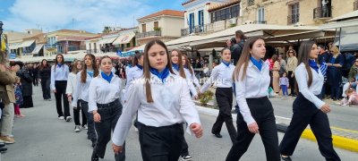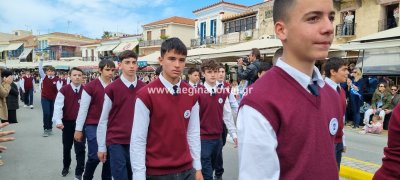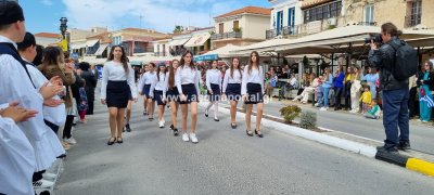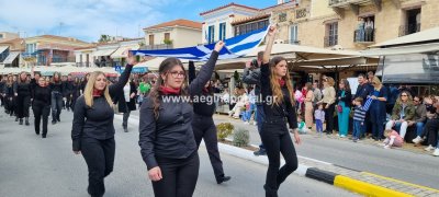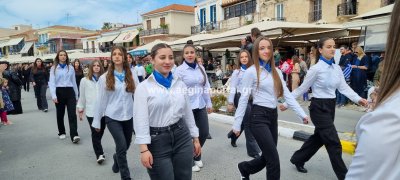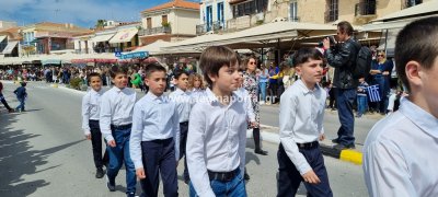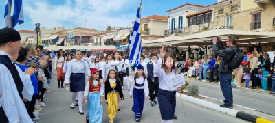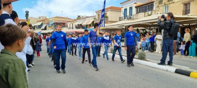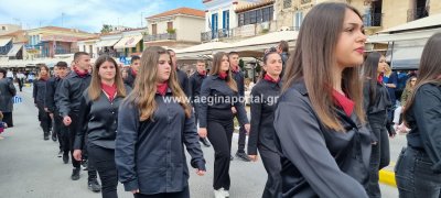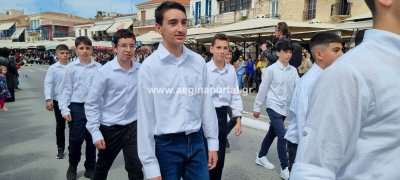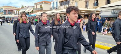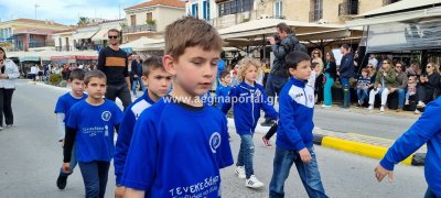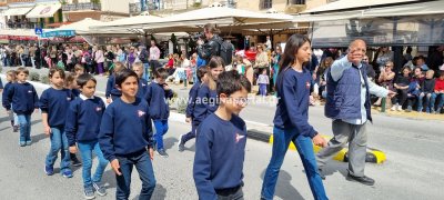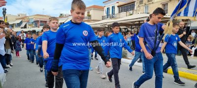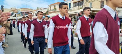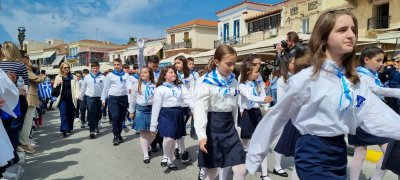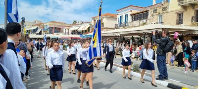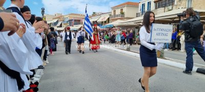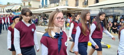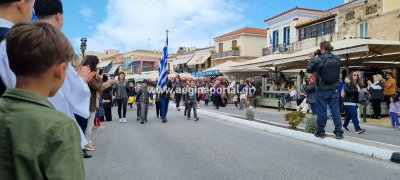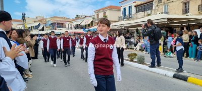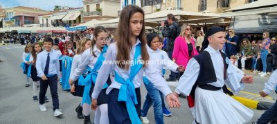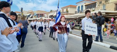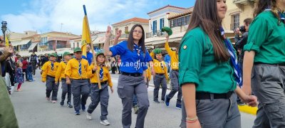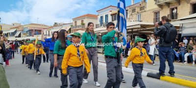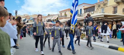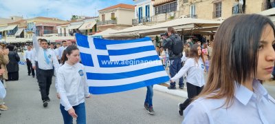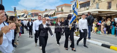 Φωτογραφίες από τη μαθητική παρέλαση στην παραλία της Αίγινας, για τον εορτασμό της 25ης Μαρτίου.