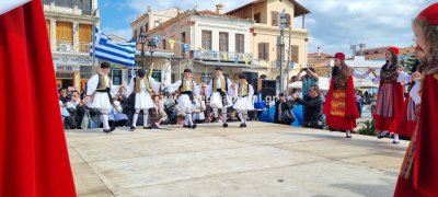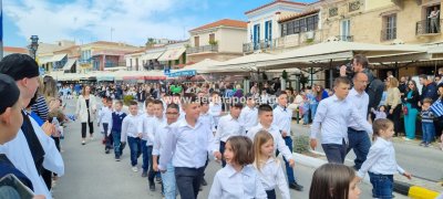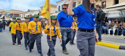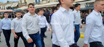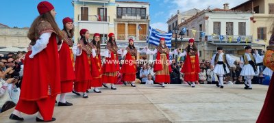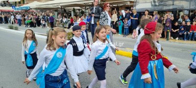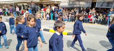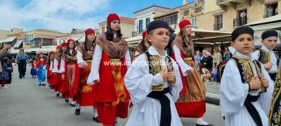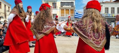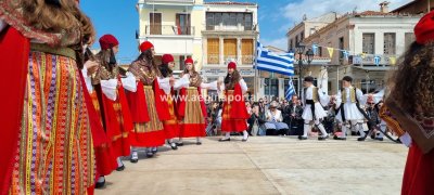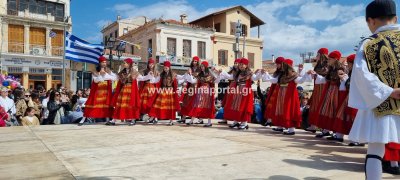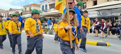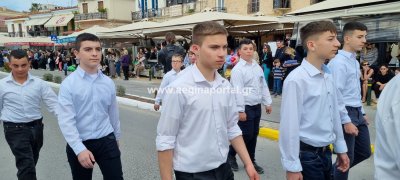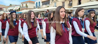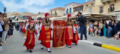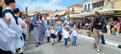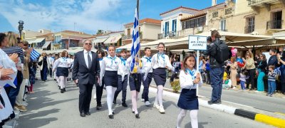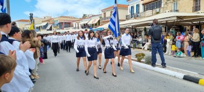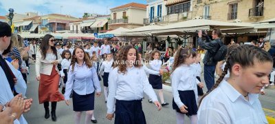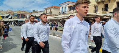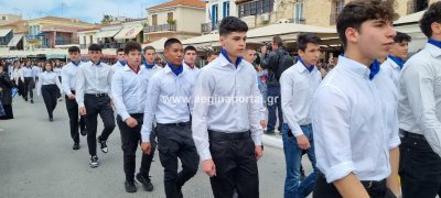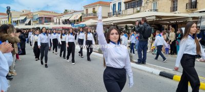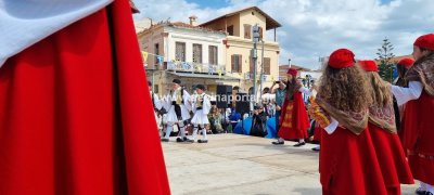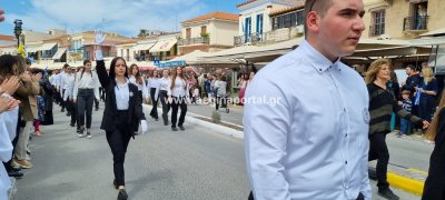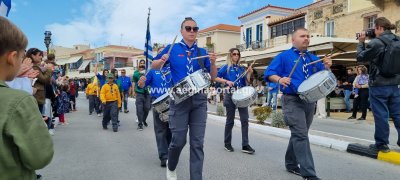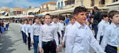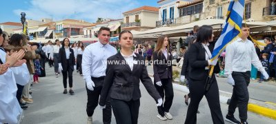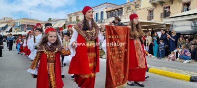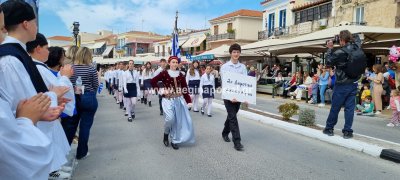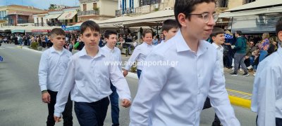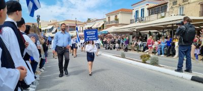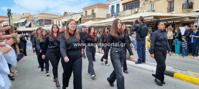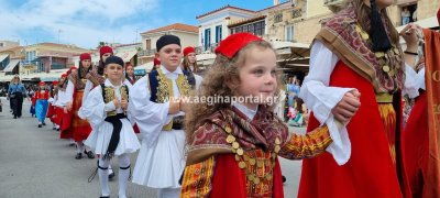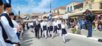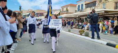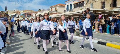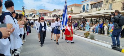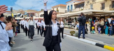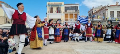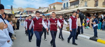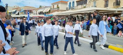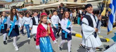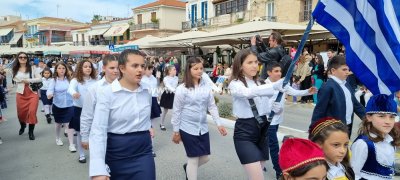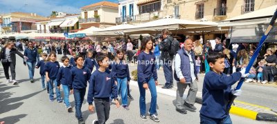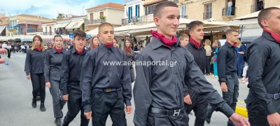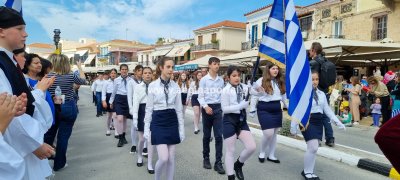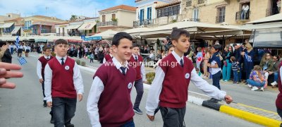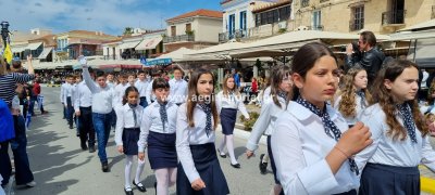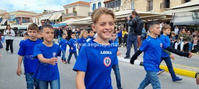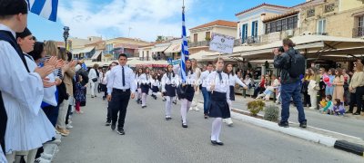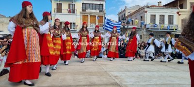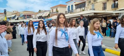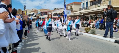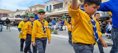 Φωτογραφίες από τη μαθητική παρέλαση στην παραλία της Αίγινας, για τον εορτασμό της 25ης Μαρτίου.