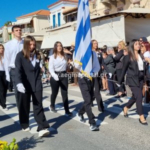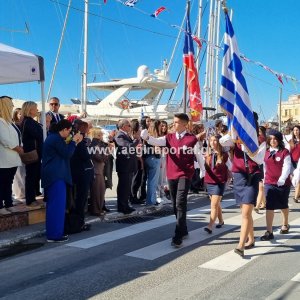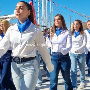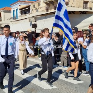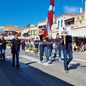 Από τις εορταστικές εκδηλώσεις του Δήμου Αίγινας. Φωτογραφίες από τη μαθητική παρέλαση για την επέτειο της 28ης Οκτωβρίου στην παραλία της Αίγινας.
