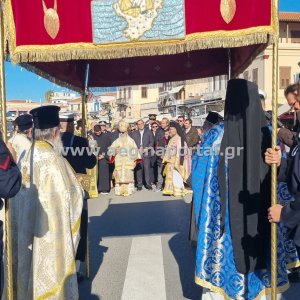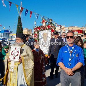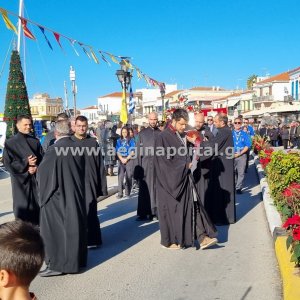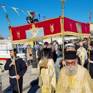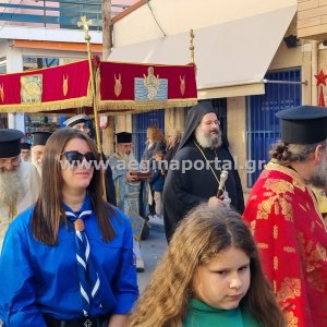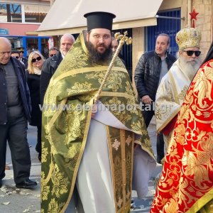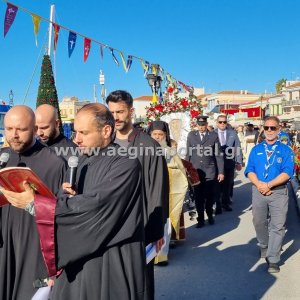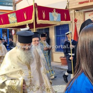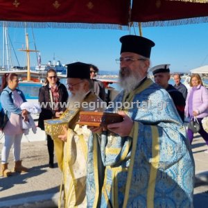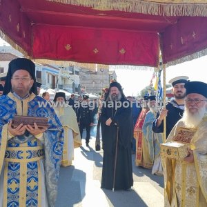 Φωτογραφίες από την λιτάνευση της εικόνας και των ιερών λειψάνων του Αγίου Διονυσίου, πολιούχου της Αίγινας.