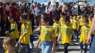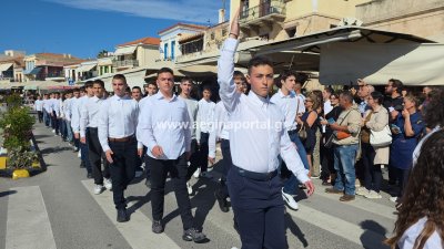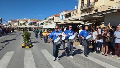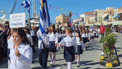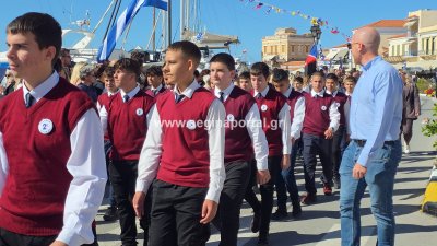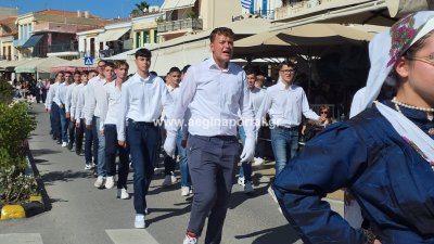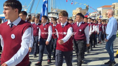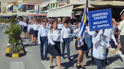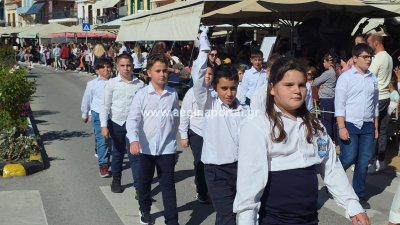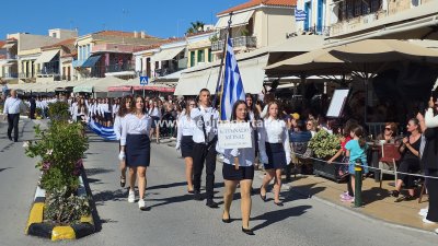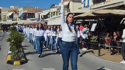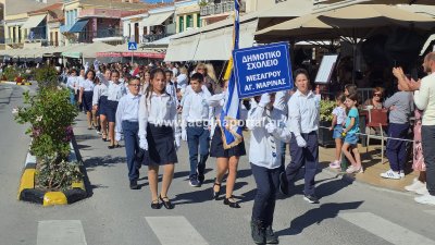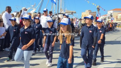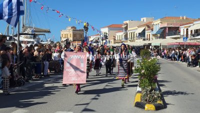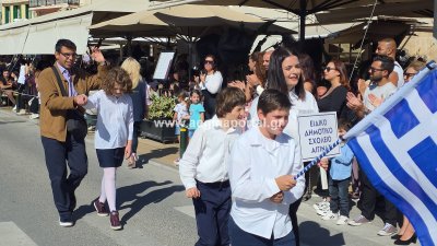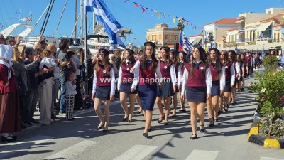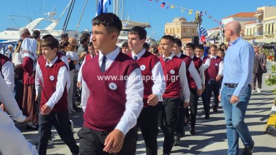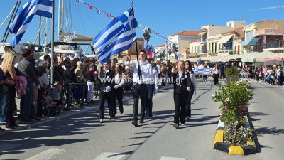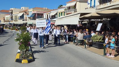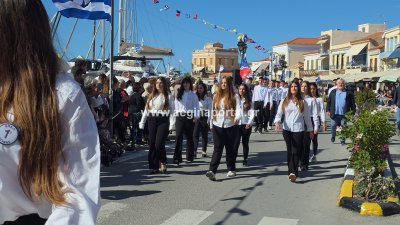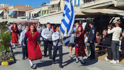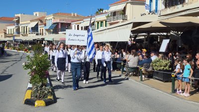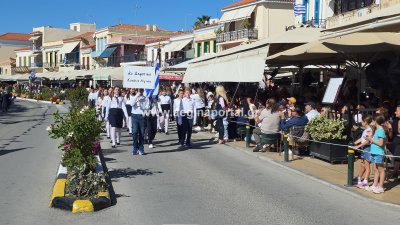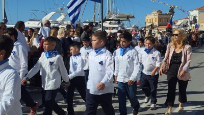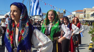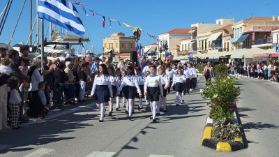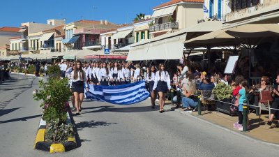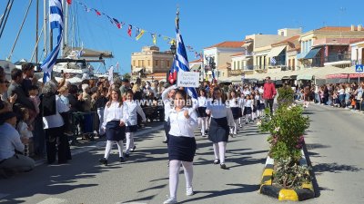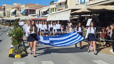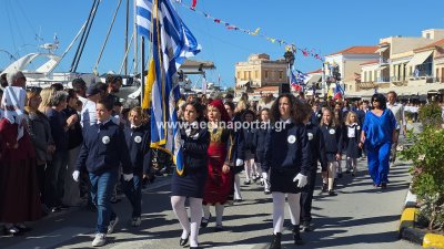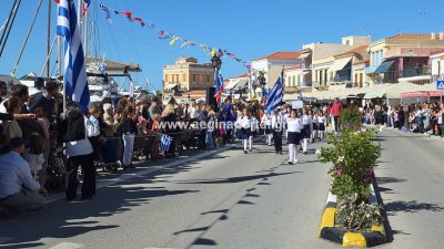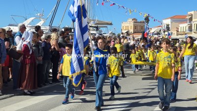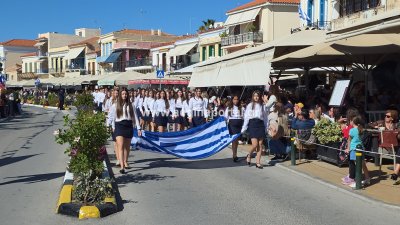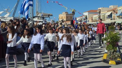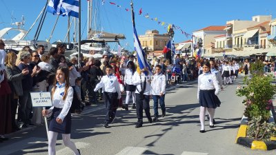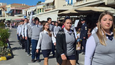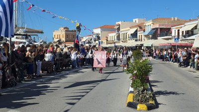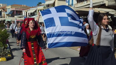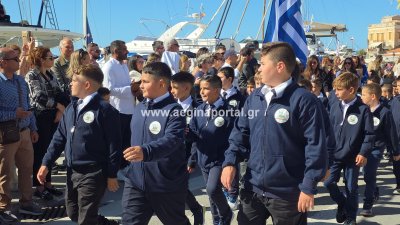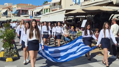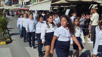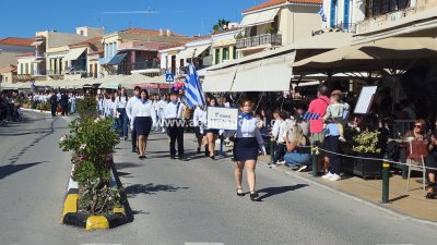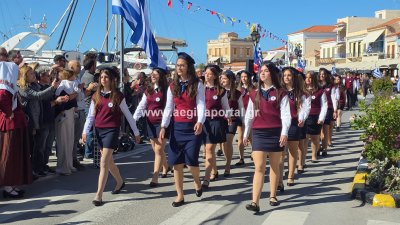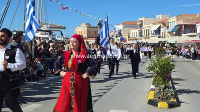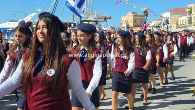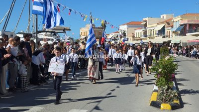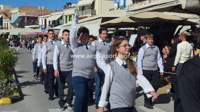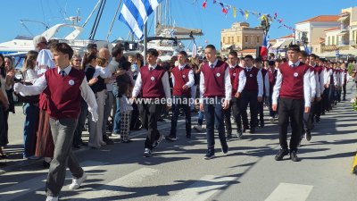 Φωτογραφίες από τη μαθητική παρέλαση για την επέτειο της 28ης Οκτωβρίου 1940, στην παραλία της Αίγινας.