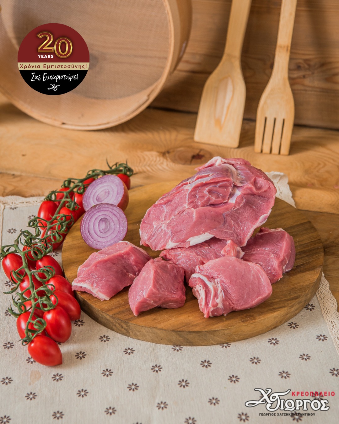 Επιλογή κρεάτων με προσοχή: Στο κατάστημα διατίθενται μοσχάρια από την ορεινή Χαλκιδική, χοιρινά από περιοχές της Κυνουρίας και Χαλκίδας, καθώς και κοτόπουλα και αμνοερίφια υψηλής ποιότητας.